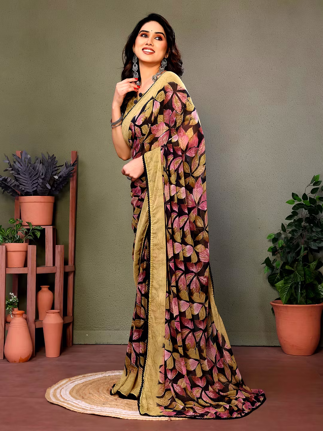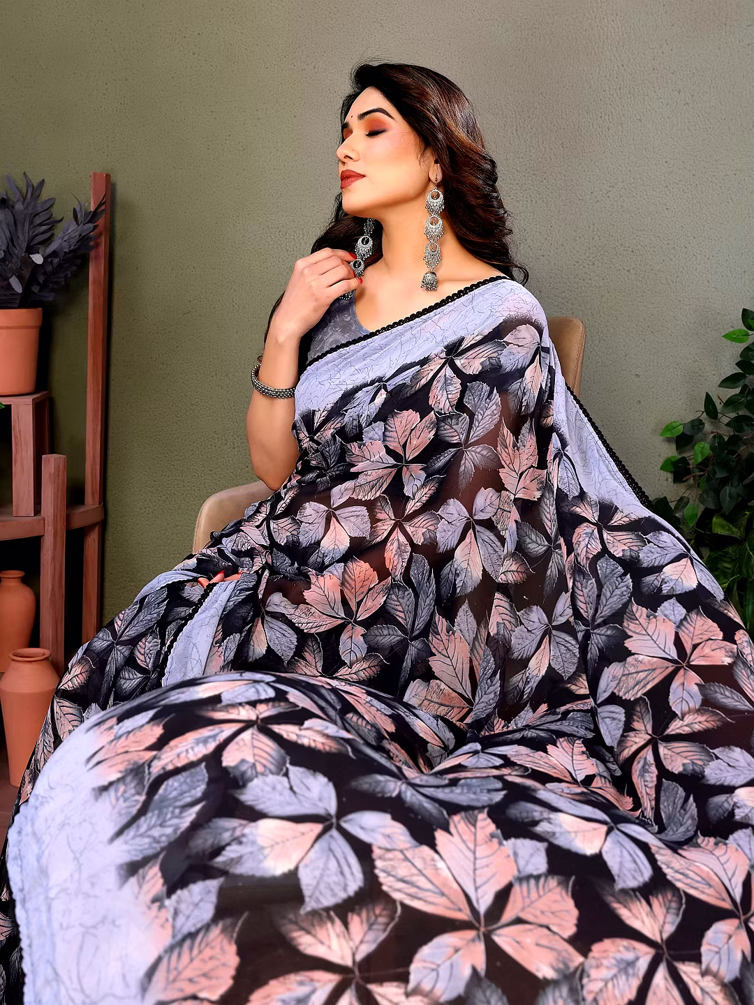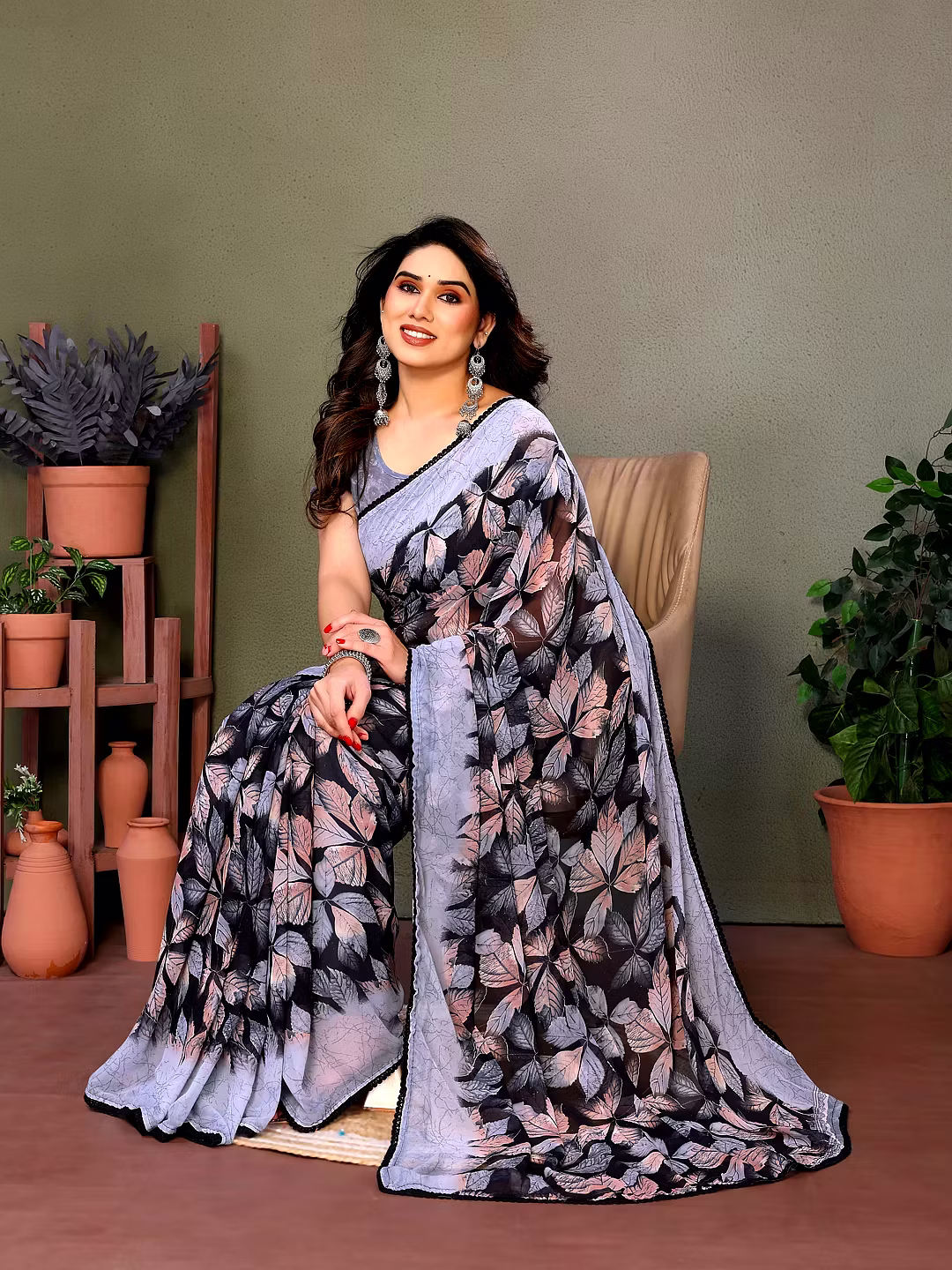 Unleash your inner grace with our Daily Wear Printed Georgette Saree. Crafted with premium georgette fabric, this saree offers a perfect balance of style and comfort. Whether it's a casual outing or a special occasion, this saree will make you stand out.