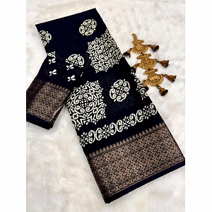 This Dark Batik Silk Saree with Jaquard Weaving and Rich Pallu is the perfect addition to any wardrobe. Crafted from the finest silk, the saree is an elegant and sophisticated piece that will make you stand out from the crowd. The saree features intricate Jaquard weaving that adds a touch of texture and depth to the fabric. The rich pallu is another standout feature, adding a touch of luxury to the saree. The dark batik pattern is perfect for any occasion, from formal events to casual outings. The saree is not only beautiful but also comfortable to wear. The soft, lightweight silk drapes beautifully and feels great against the skin. The saree is easy to drape and stays in place all day long. Whether you are looking for a saree for a wedding, a party, or just a night out on the town, this Dark Batik Silk Saree with Jaquard Weaving and Rich Pallu is the perfect choice. It is a versatile and timeless piece that will add elegance and sophistication to your wardrobe. So why wait? Order yours today and experience the beauty and luxury of this exquisite saree for yourself!