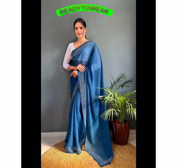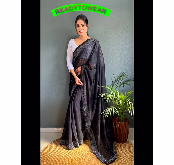 Introducing the latest addition to our collection - the 1 Minute Saree. This stunning saree is perfect for any party or special occasion. Made from Georgette fabric, it boasts an all-over heavy beads work that will have you turning heads all night long. The diamond hotfix hit design adds a touch of glamour to this already beautiful saree. And the best part? It's ready-to-wear, so you can look stunning in just minutes. The blouse that comes with the saree is a beautiful white color with all-over sequence work and all-over work. It perfectly complements the saree and completes the look. At 5.50 exact for the saree cut and 0.80 for the blouse cut, this 1 Minute Saree is the perfect choice for those who want to look their best without spending hours getting ready. We pride ourselves on providing only the highest quality products, so you can be sure that you're getting a product that not only looks amazing but will last for many occasions to come. Don't miss out on this must-have addition to your wardrobe. Get your hands on the 1 Minute Saree today and take the first step towards effortless style and elegance.