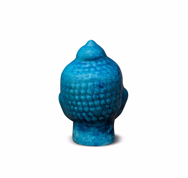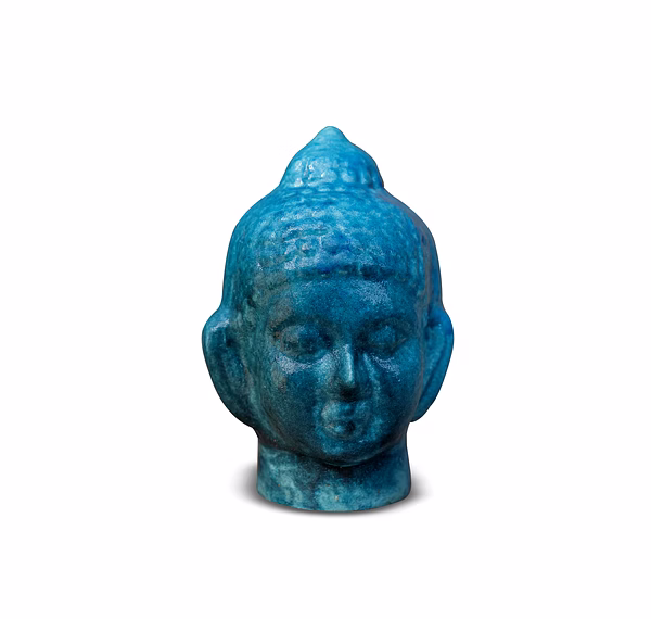 Experience the serene artistry of Indian craftsmanship with this Delhi Blue Pottery Buddha Curio. Handcrafted by skilled artisans in Delhi, this decorative Buddha head showcases the timeless beauty of blue pottery, a centuries-old technique that blends Persian art influences with Indian tradition.