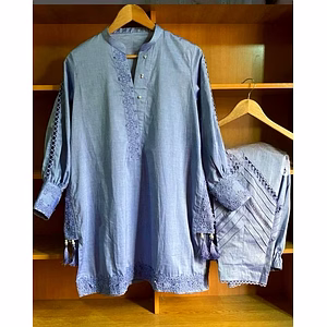 Discover the epitome of elegance and sophistication with our Designer Dull Santoon Suit, intricately adorned with GPO Lace Work and complemented by Fancy Latkan detailing. This exquisite ensemble is a testament to timeless fashion, blending traditional craftsmanship with contemporary design to create a piece that is both classic and modern. The suit is meticulously crafted from high-quality dull santoon fabric, known for its smooth texture, durability, and luxurious feel. This fabric drapes beautifully, ensuring a flattering silhouette that accentuates the wearer’s natural grace. The dull santoon's subtle sheen adds a touch of understated glamour, making it perfect for both day and evening wear. What truly sets this suit apart is the exquisite GPO lace work. The lace, with its intricate patterns and delicate design, adds a layer of sophistication and elegance. Each lace motif is carefully sewn to enhance the suit's overall aesthetic, creating a harmonious blend of texture and detail. The lace work is strategically placed to highlight the suit's most flattering features, ensuring that you look your best from every angle. Adding to the suit's charm are the fancy latkans. These decorative tassels are not only a nod to traditional Indian fashion but also serve as a playful and stylish accent. The latkans are designed to sway gently with your movements, adding a dynamic element to the suit that is both eye-catching and fashionable. They are placed thoughtfully to complement the suit’s design without overwhelming it, striking the perfect balance between embellishment and elegance. This designer suit is available in multiple sizes, ensuring a perfect fit for every body type. Whether you are attending a wedding, festive celebration, or any special occasion, this suit will make you feel like a queen. Its versatile design allows it to be easily accessorized, whether you prefer traditional jewelry or modern pieces, making it a must-have addition to any wardrobe. Indulge yourself in the luxury and beauty of our Designer Dull Santoon Suit with GPO Lace Work & Fancy Latkan. This piece is more than just clothing; it is an experience of elegance, style, and timeless beauty.
