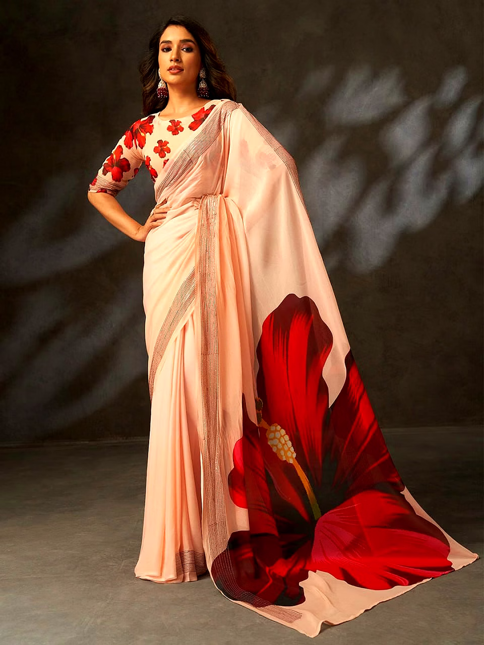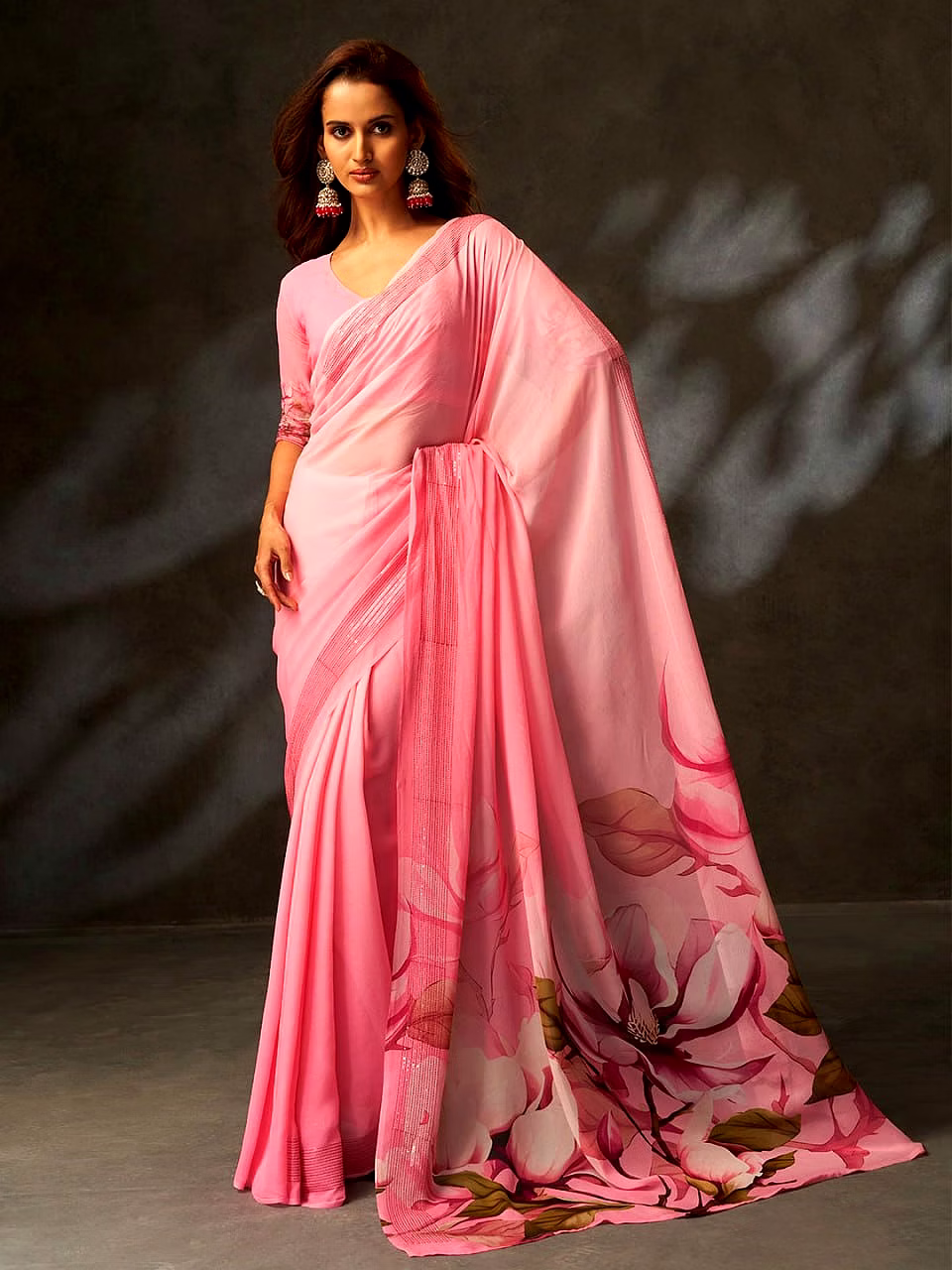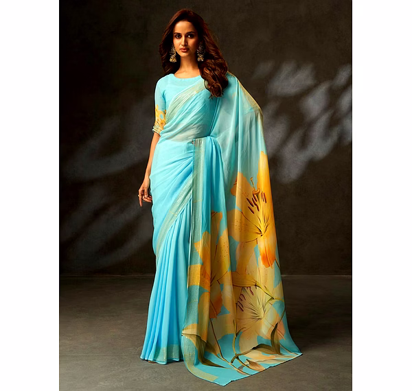 Embrace versatility with this Georgette Saree, suitable for various events from festive celebrations to formal occasions. Elevate your wardrobe with this timeless piece that effortlessly captures attention and admiration.