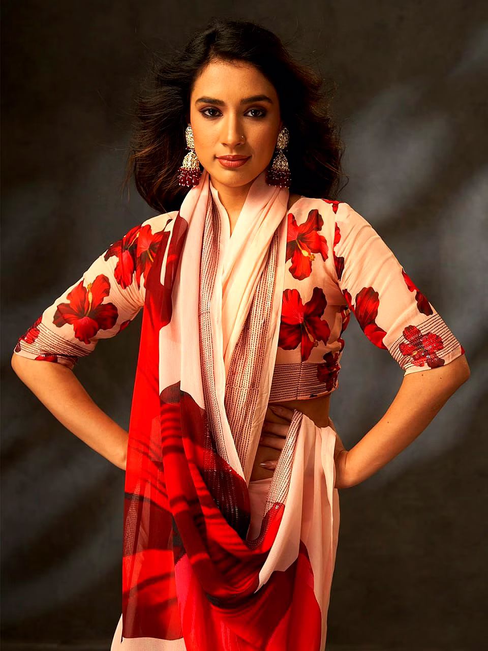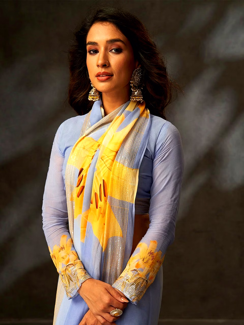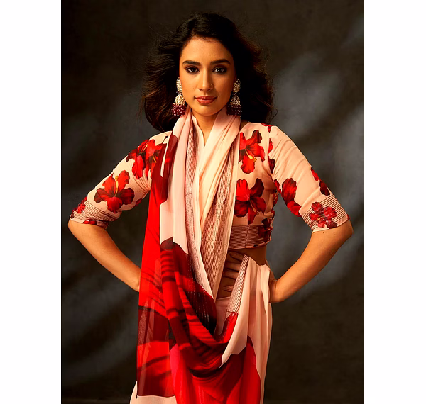 Each saree is a masterpiece, adorned with intricate digital prints that exude charm and allure. The fine crochet work reflects a blend of tradition and contemporary design, ensuring you stand out in any gathering.
