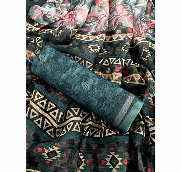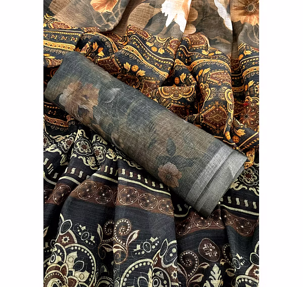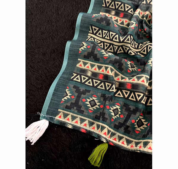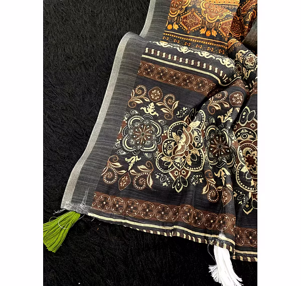 Whether you're attending a wedding or a casual gathering, this Digital Print Linen Saree with Latkan effortlessly elevates your look. Embrace versatility and grace with this timeless piece.