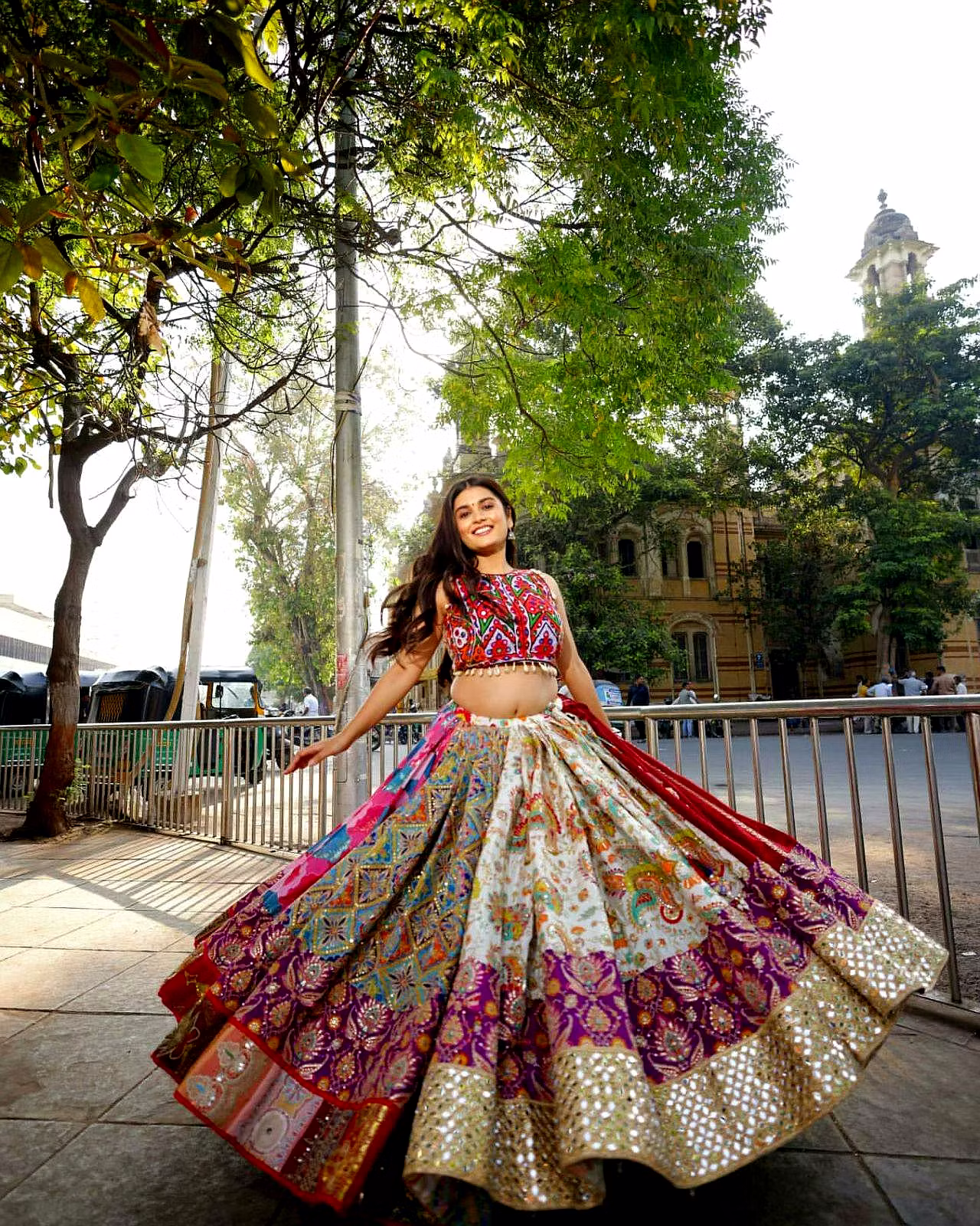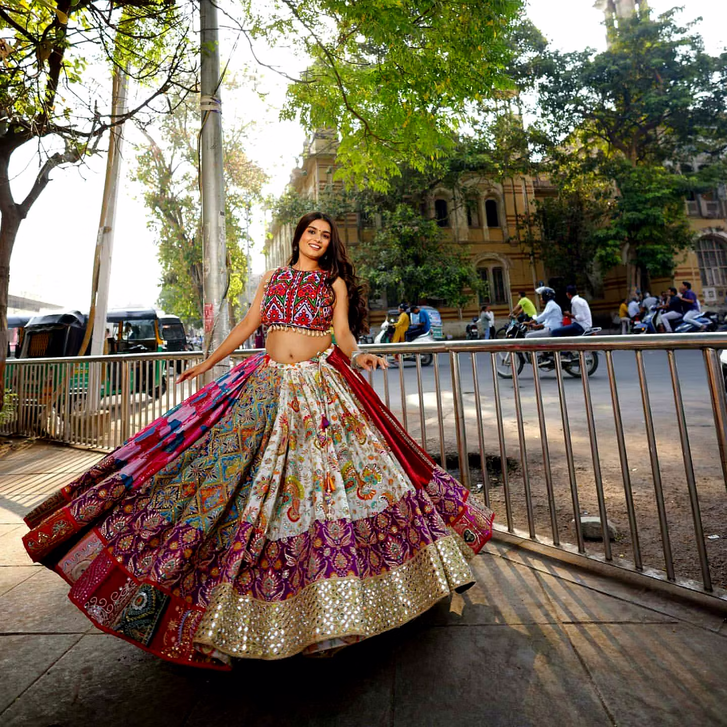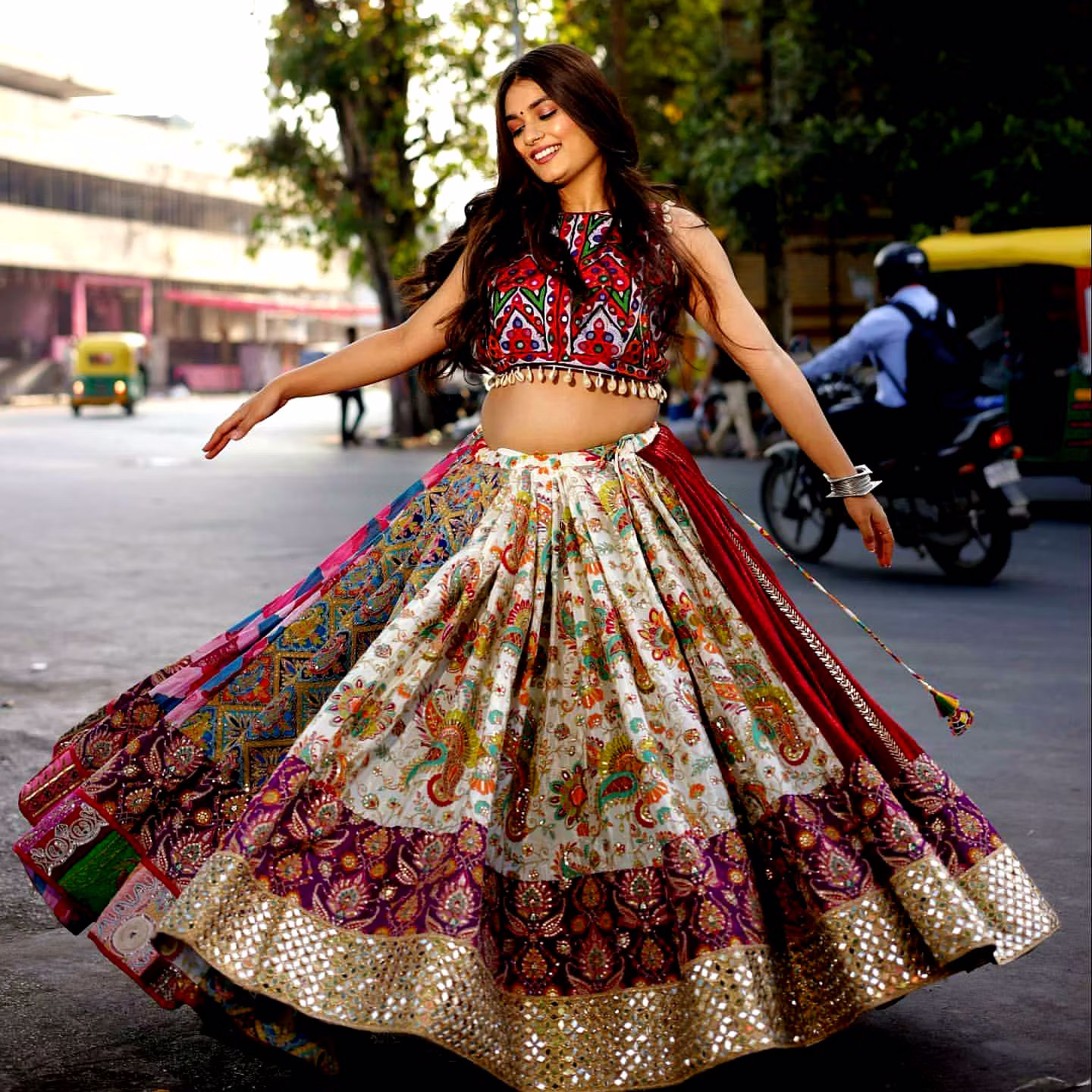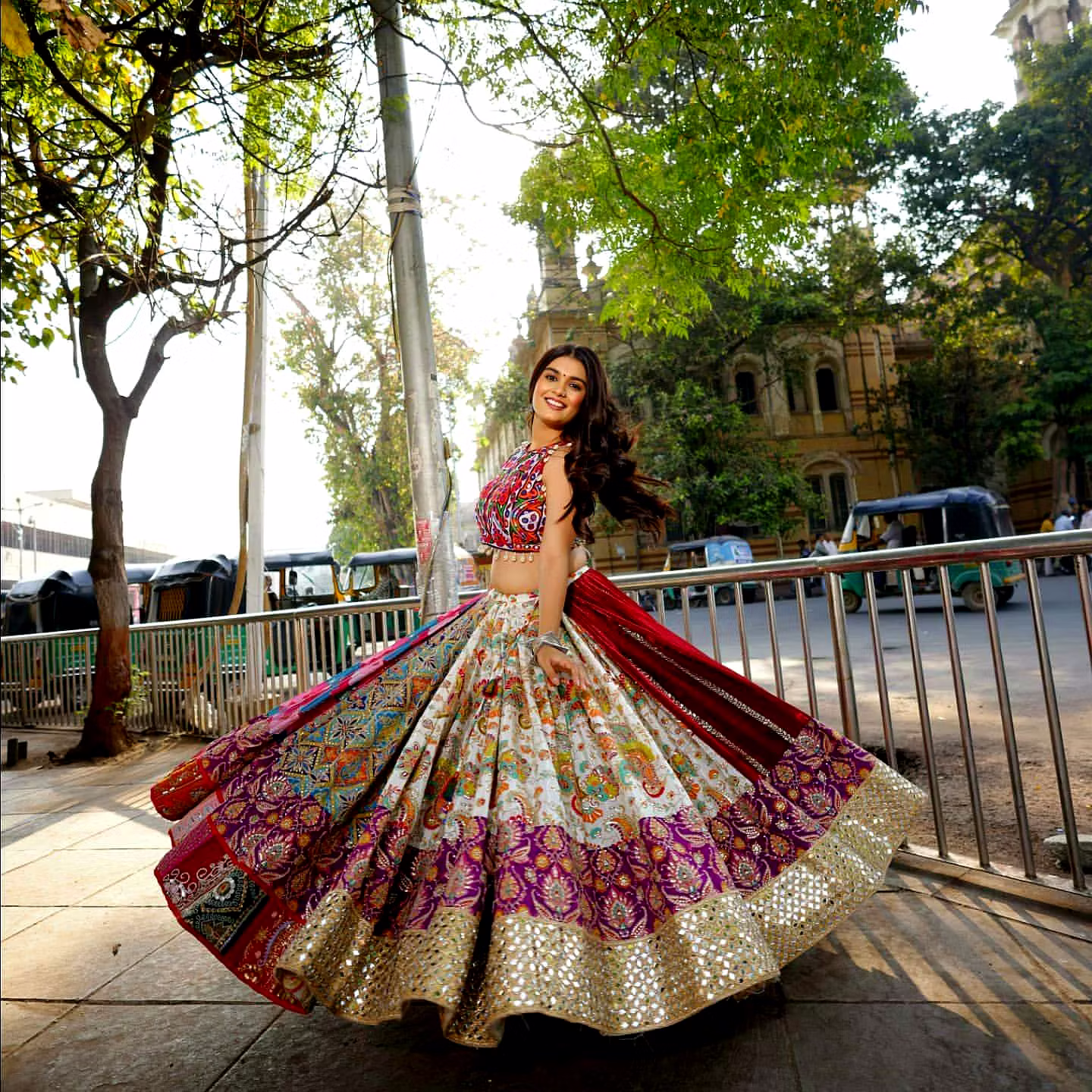 Elevate your Navratri style with our stunning Digital Print Mirror Work Lehenga Choli. Perfect for festive occasions, this ensemble combines tradition with modern flair.