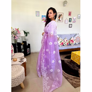 Introducing our stunning Digital Print Organza Saree with Cut Work Blouse. This exquisite ensemble combines traditional elegance with contemporary style, making it a must-have addition to your wardrobe. The saree features a mesmerizing digital print, meticulously crafted to enhance its vibrant colors and intricate patterns. The lightweight organza fabric drapes gracefully and effortlessly, creating a flattering silhouette that is both comfortable and luxurious. The highlight of this saree is the beautifully designed cut work blouse. The intricate cut work detailing adds a touch of sophistication and uniqueness to the ensemble, making it truly standout. Handcrafted with precision, the blouse perfectly complements the saree, creating a harmonious fusion of tradition and modernity. Crafted to perfection, this saree is not only visually appealing but also boasts a range of practical features. The digital print ensures long-lasting color vibrancy, making it suitable for various occasions. The lightweight organza fabric allows for easy movement, ensuring you stay comfortable throughout the day or night. Designed for the modern woman, this saree effortlessly combines style and versatility. It can be dressed up or down, making it suitable for both formal events and casual outings. Pair it with minimal jewelry and heels for a glamorous look or dress it down with flats for a more relaxed vibe. With its impeccable craftsmanship, unique design, and versatile style, our Digital Print Organza Saree with Cut Work Blouse is a true standout in the world of ethnic fashion. Elevate your wardrobe with this statement piece and be prepared to turn heads wherever you go.