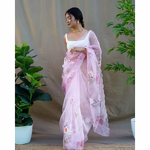 Introducing our stunning Digital Print Organza Saree with Cut Work Blouse. This exquisite ensemble combines traditional elegance with contemporary style, making it a must-have addition to your wardrobe. The saree features a mesmerizing digital print, meticulously crafted to enhance its vibrant colors and intricate patterns. The lightweight organza fabric drapes gracefully and effortlessly, creating a flattering silhouette that is both comfortable and luxurious. The highlight of this saree is the beautifully designed cut work blouse. The intricate cut work detailing adds a touch of sophistication and uniqueness to the ensemble, making it truly standout. Handcrafted with precision, the blouse perfectly complements the saree, creating a harmonious fusion of tradition and modernity. Crafted to perfection, this saree is not only visually appealing but also boasts a range of practical features. The digital print ensures long-lasting color vibrancy, making it suitable for various occasions. The lightweight organza fabric allows for easy movement, ensuring you stay comfortable throughout the day or night. Designed for the modern woman, this saree effortlessly combines style and versatility. It can be dressed up or down, making it suitable for both formal events and casual outings. Pair it with minimal jewelry and heels for a glamorous look or dress it down with flats for a more relaxed vibe. With its impeccable craftsmanship, unique design, and versatile style, our Digital Print Organza Saree with Cut Work Blouse is a true standout in the world of ethnic fashion. Elevate your wardrobe with this statement piece and be prepared to turn heads wherever you go.