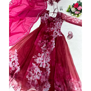 Introducing the Digital Printed Anarkali Gown with Huge Flair and Stylish Accessories - the perfect combination of style, comfort, and sophistication. Crafted from premium quality fabric, this gown features a stunning digital print that is sure to turn heads. The gown's huge flair adds an extra touch of elegance, making it perfect for a variety of occasions. But this gown isn't just about looks; it's also incredibly comfortable to wear. The soft, breathable fabric ensures you can wear it all day or night without feeling restricted or uncomfortable. The gown's stylish accessories, including a matching dupatta and churidar, complete the look and make it easy to create a cohesive outfit. One of the standout features of this gown is its versatility. It's perfect for weddings, parties, and other formal occasions, but it can also be dressed down for a more casual look. Simply swap out the dupatta and churidar for a pair of leggings or jeans, and you're ready to go. But what really sets this gown apart is its unique selling point - the digital print. Unlike traditional prints, digital prints offer unparalleled detail and precision. This means that every aspect of the design is crisp, clear, and vibrant. The result is a gown that looks stunning from every angle and is sure to make you stand out in a crowd. In summary, the Digital Printed Anarkali Gown with Huge Flair and Stylish Accessories is a must-have for anyone looking for a stylish, versatile, and comfortable outfit. With its unique digital print, huge flair, and stylish accessories, this gown is sure to become a staple in your wardrobe.