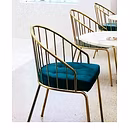 Dining /casual chair upholstered with foam & fabric lower legs & back in PVD coated.