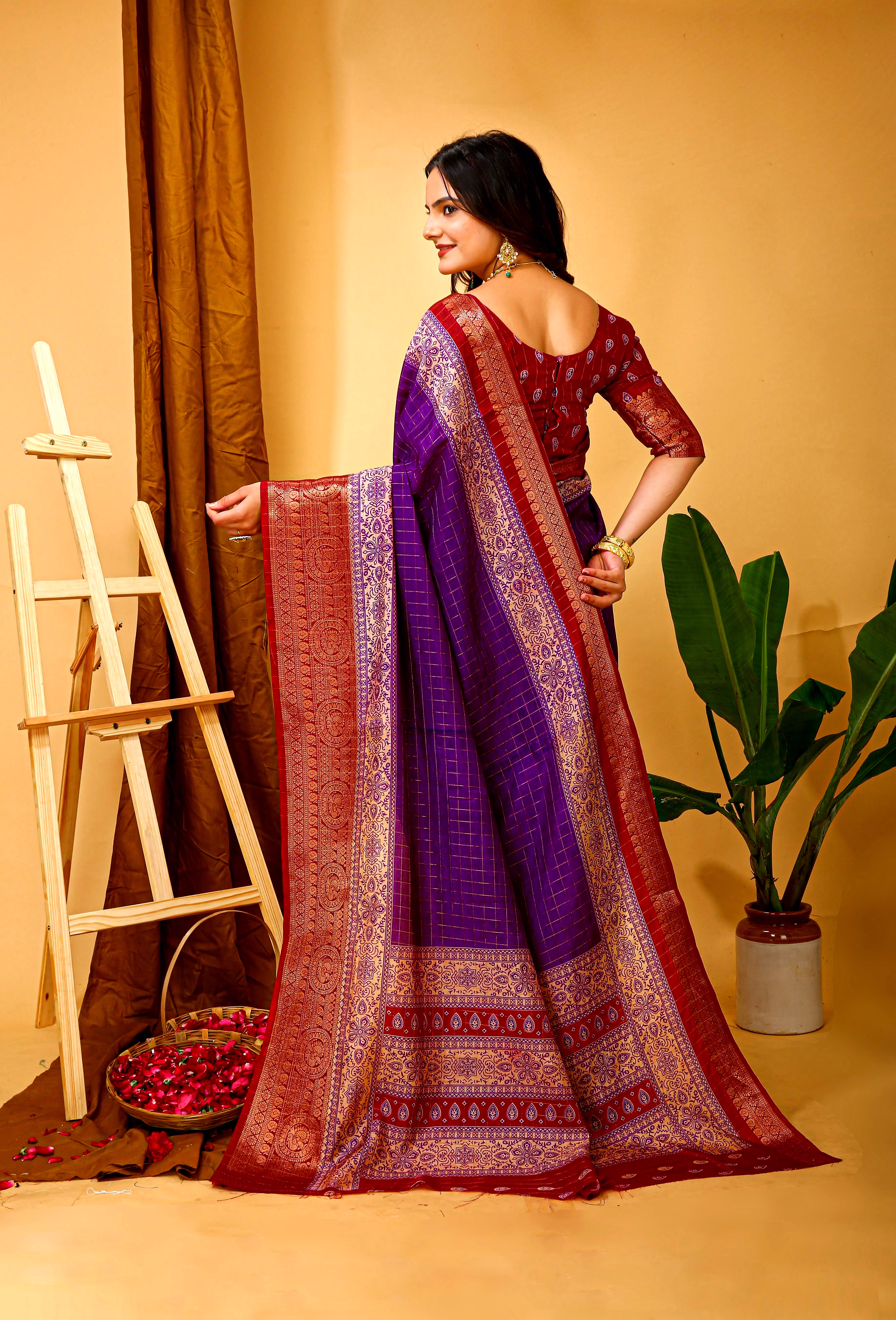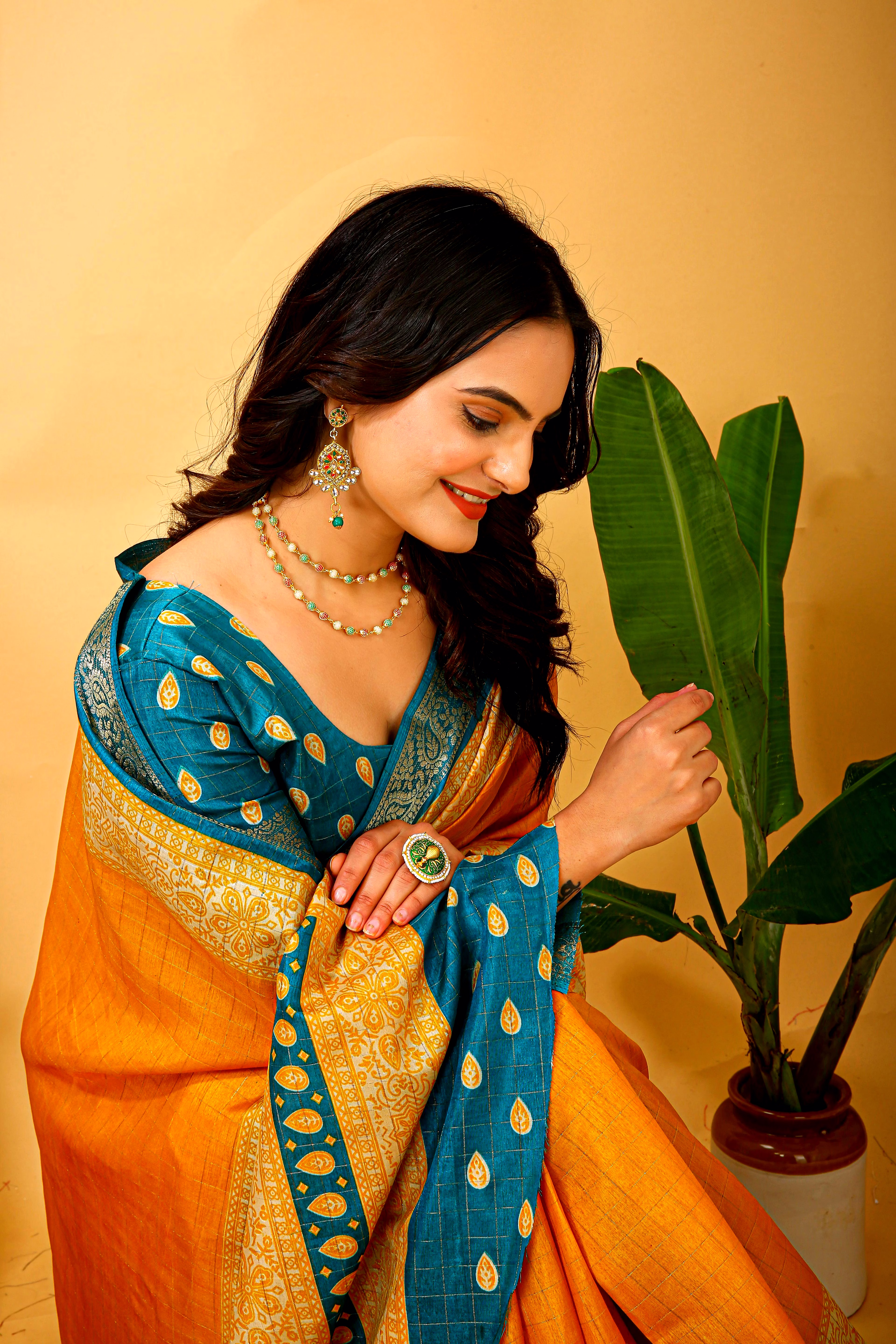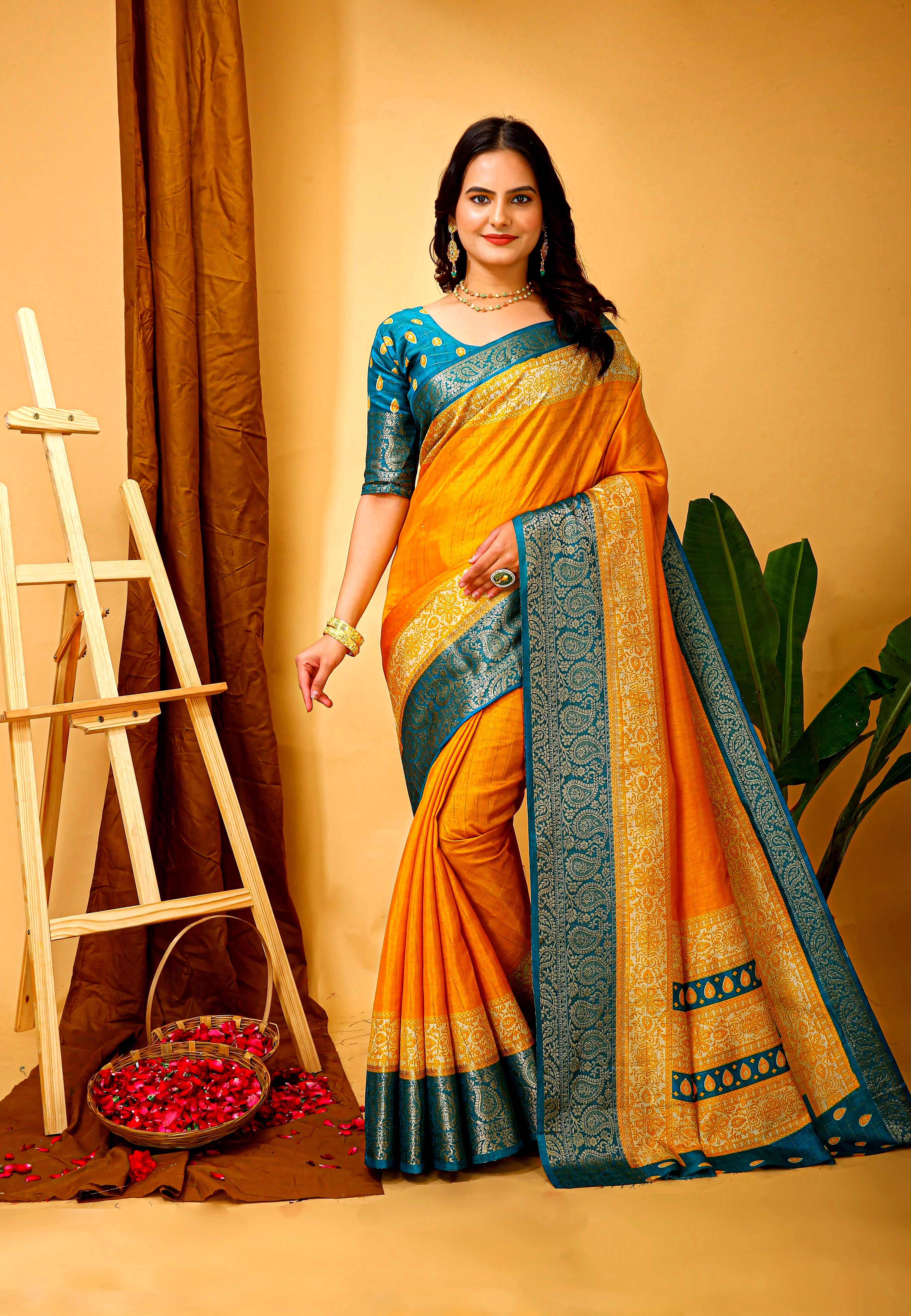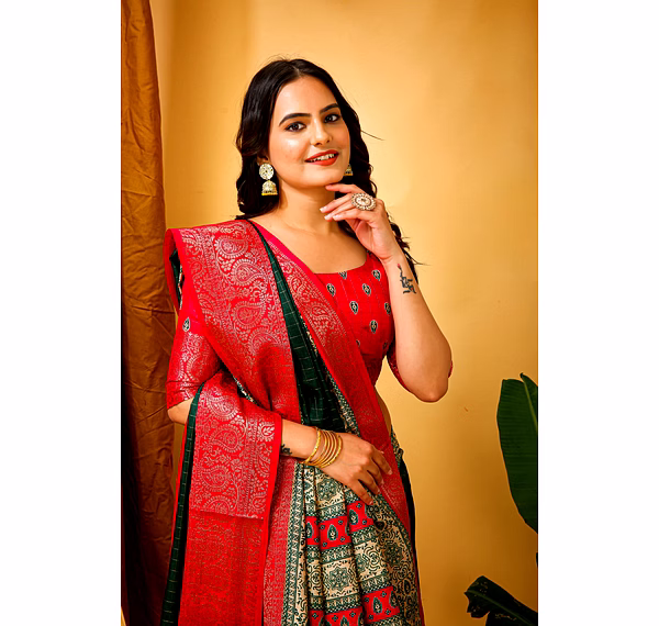 Our saree boasts a rich texture and a flattering drape, making it an ideal choice for all-day wear. The lightweight fabric offers a festive appeal while keeping you comfortable throughout long celebrations.
