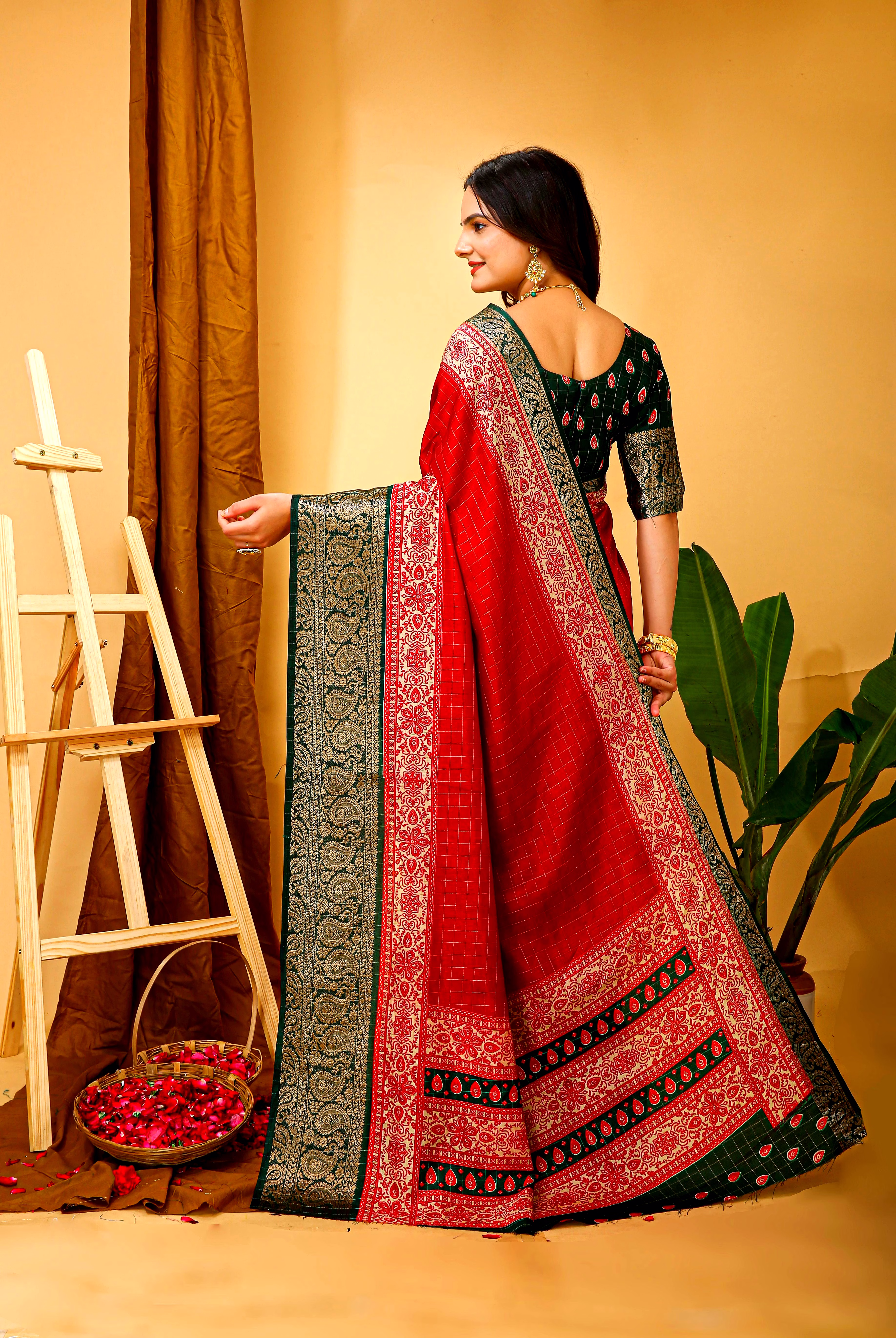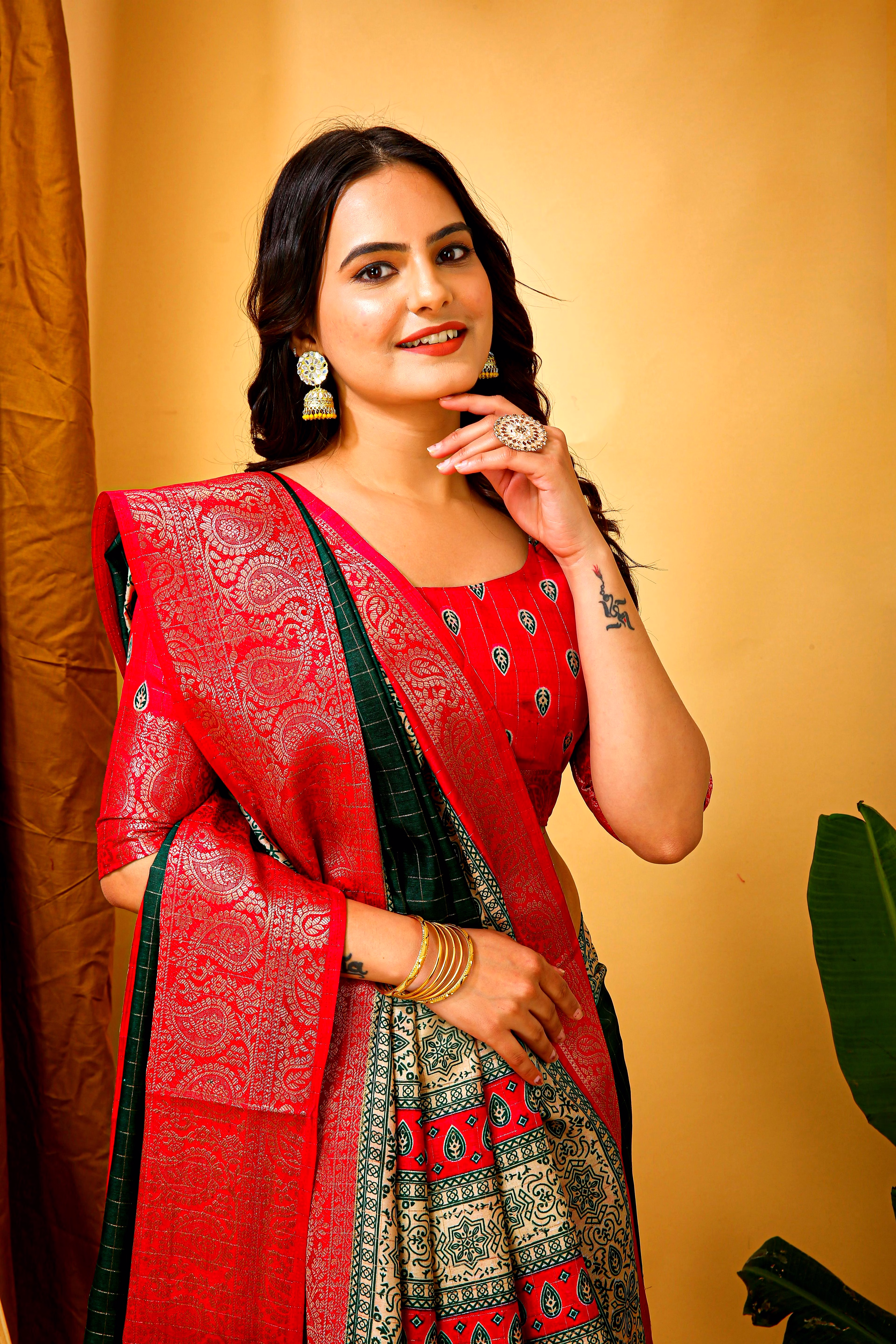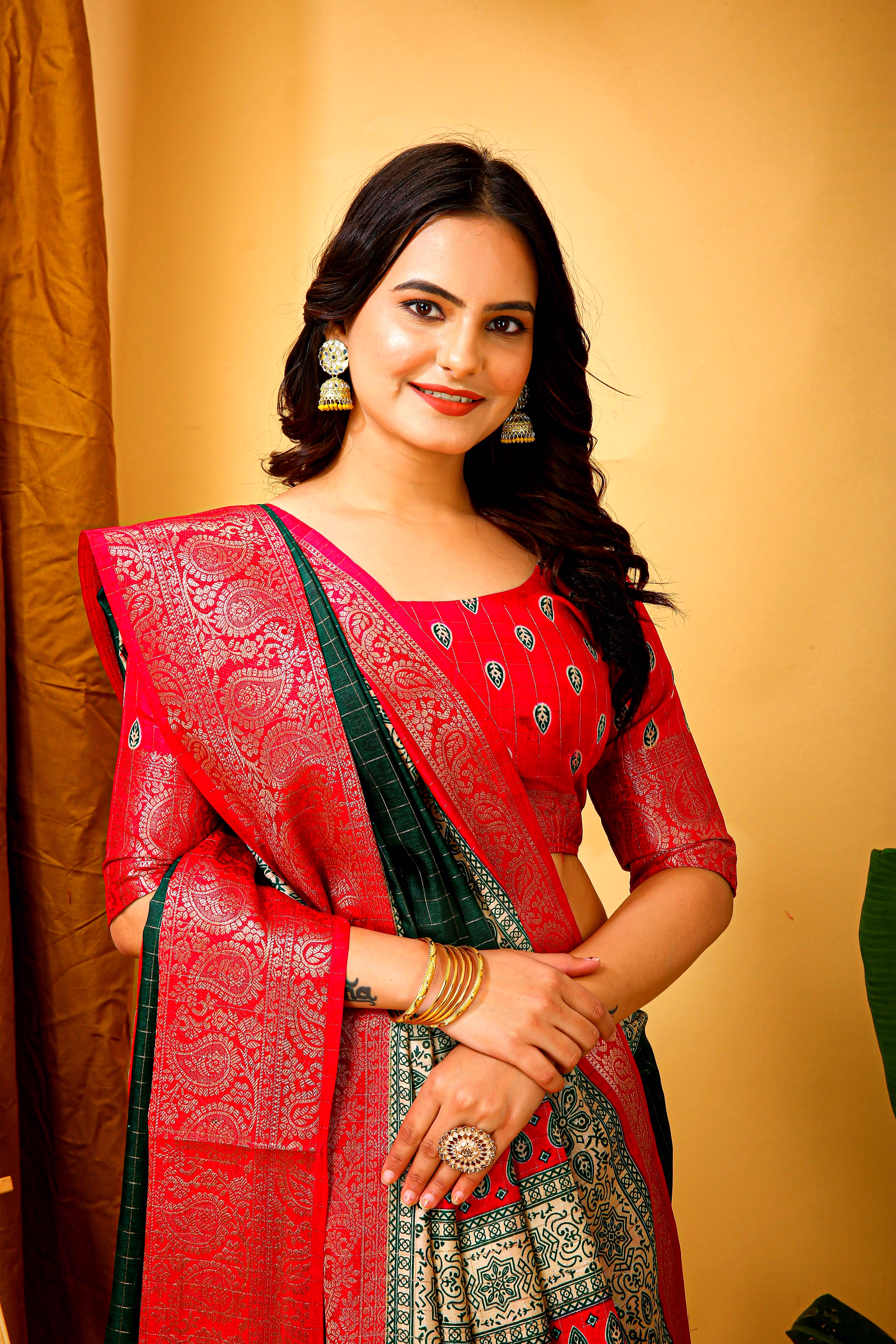 Our saree boasts a rich texture and a flattering drape, making it an ideal choice for all-day wear. The lightweight fabric offers a festive appeal while keeping you comfortable throughout long celebrations.