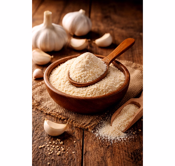 Dry Garlic Powder is produced from carefully selected fresh garlic cloves that are cleaned, sliced, dehydrated under controlled conditions, and finely milled to obtain a free-flowing powder. It retains the characteristic aroma, pungency, and flavor of fresh garlic, making it a widely used ingredient in food processing, seasoning blends, sauces, marinades, and culinary applications.