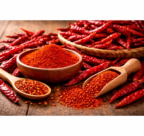 • Byadgi Chilli (Karnataka, GI region) – Low pungency with high natural red colour, preferred for colour-driven applications