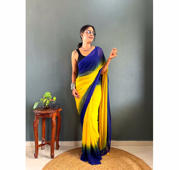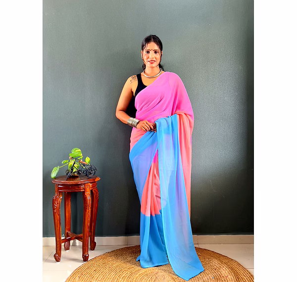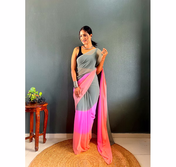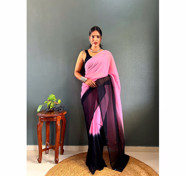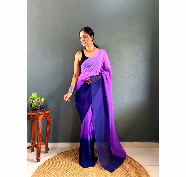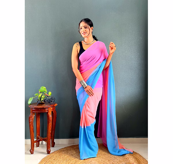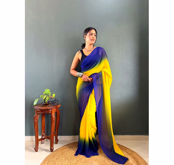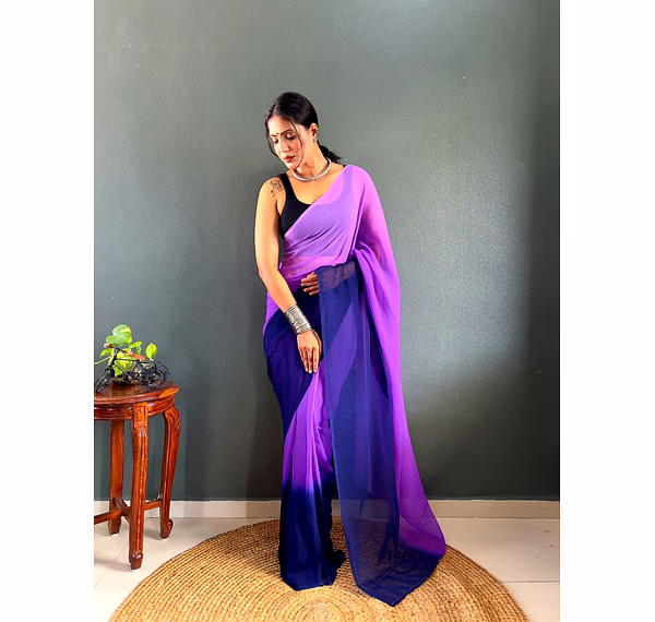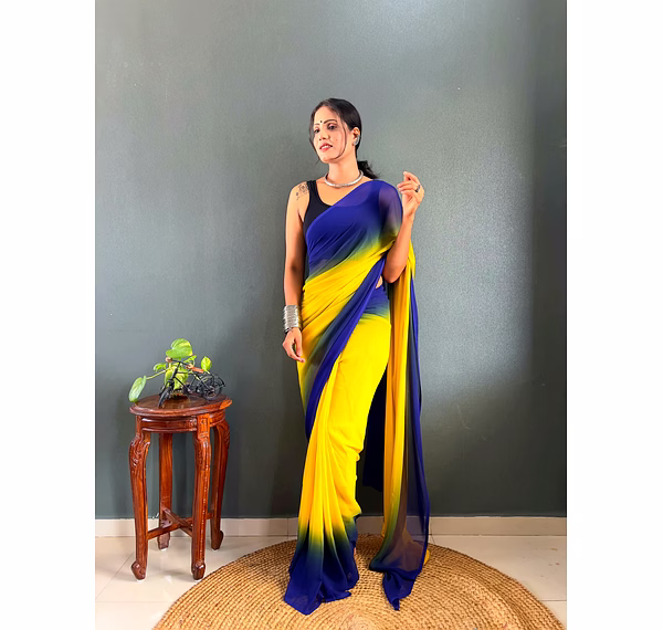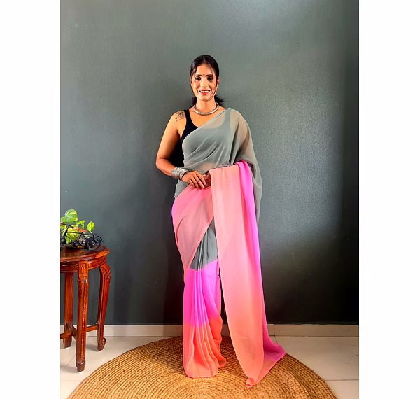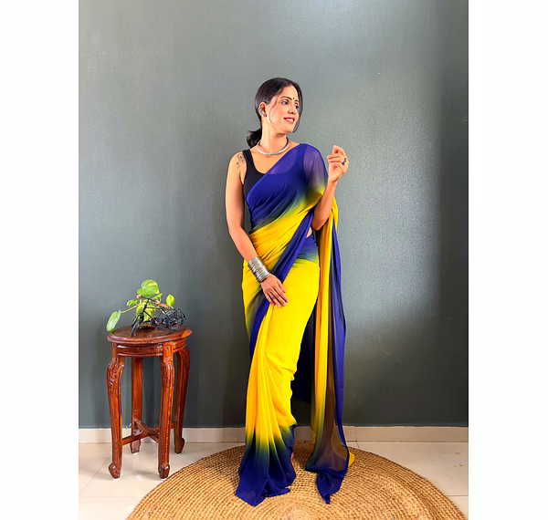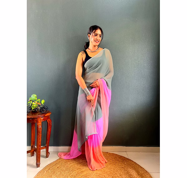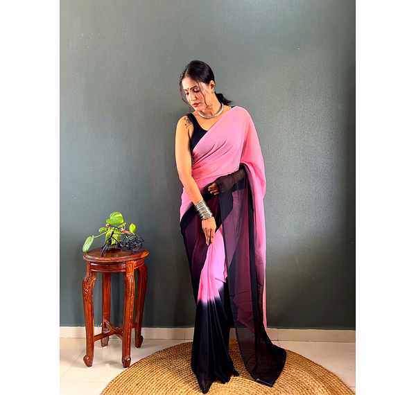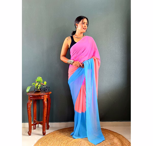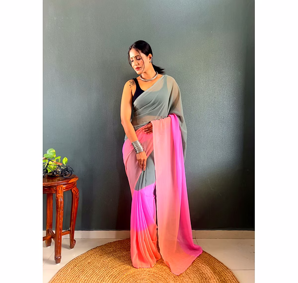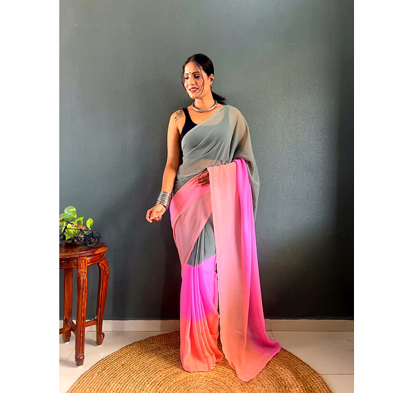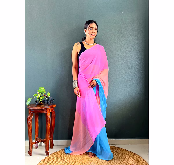 Elevate your style effortlessly with our Dual Tone Georgette Ready to Wear Saree. Embrace convenience and elegance in one stunning piece.