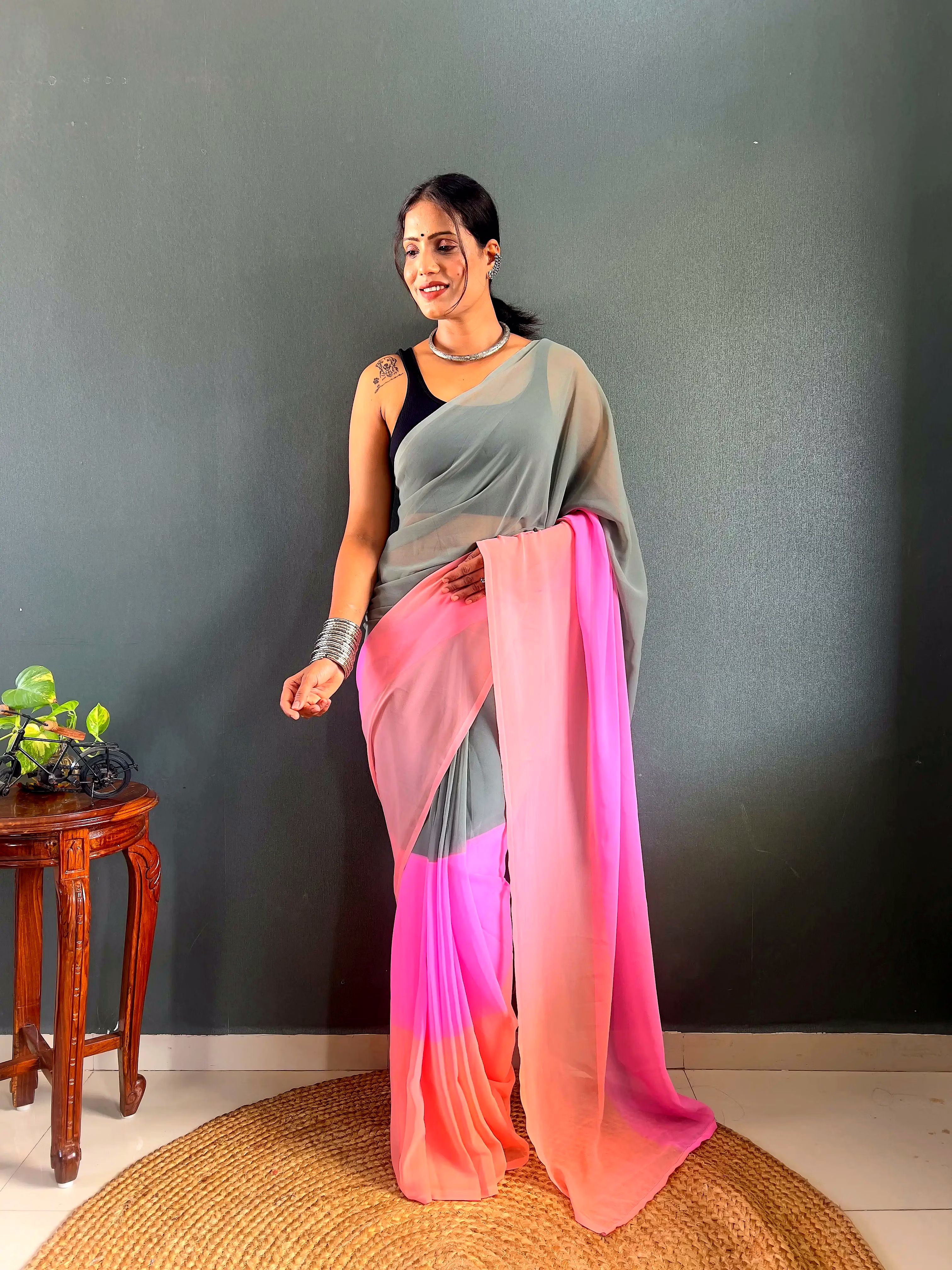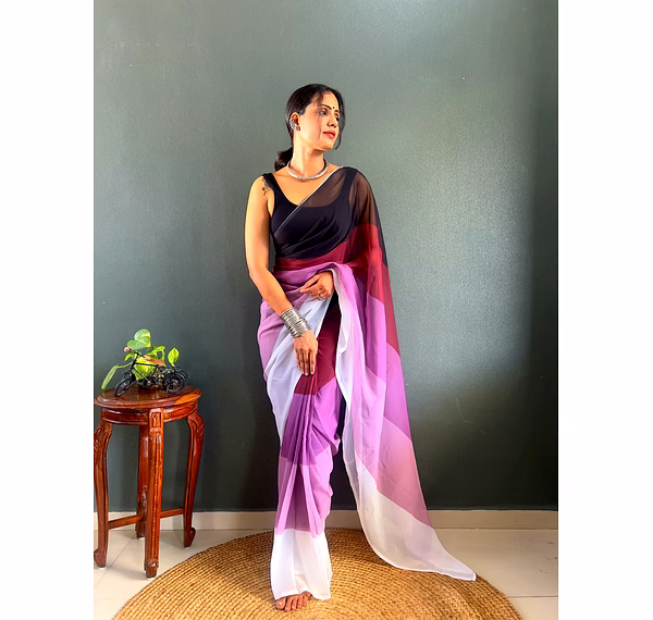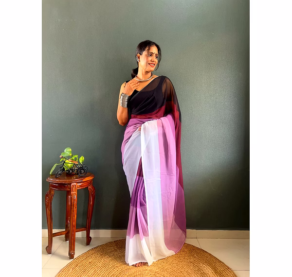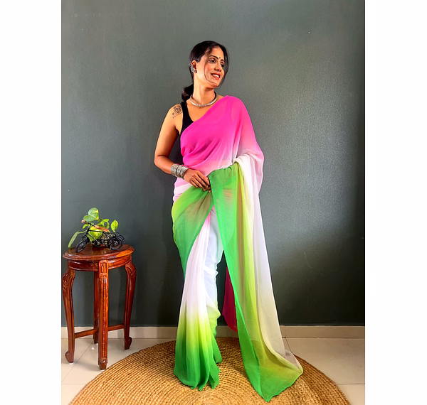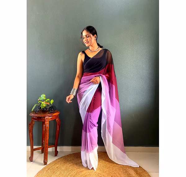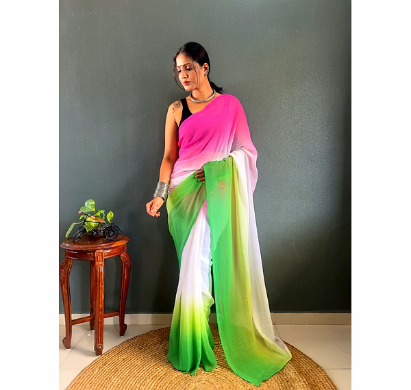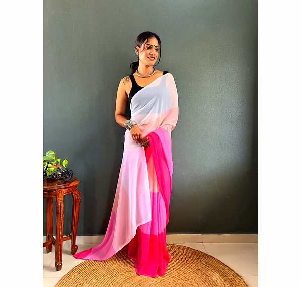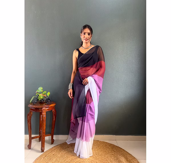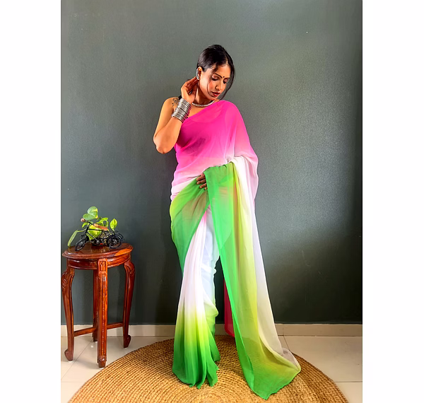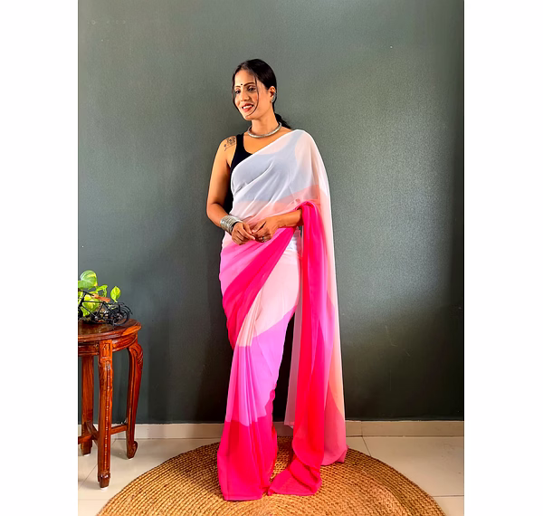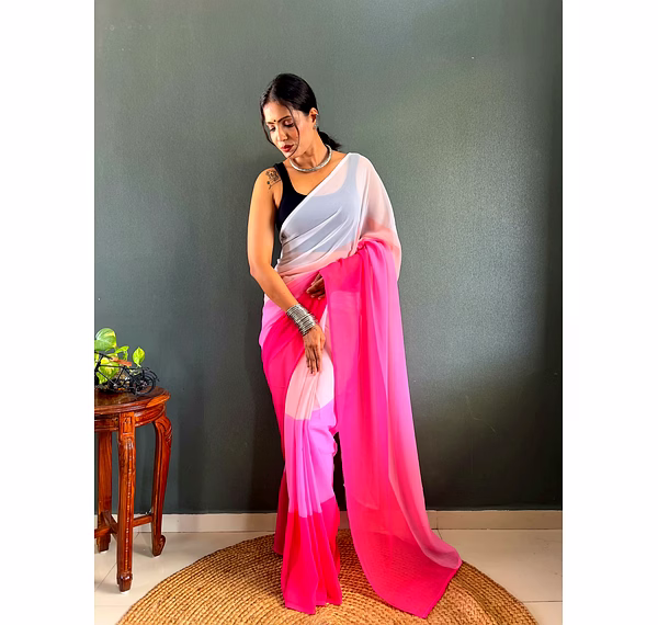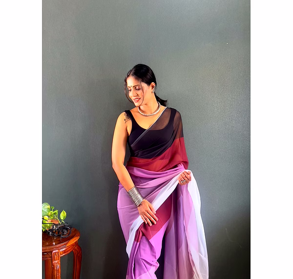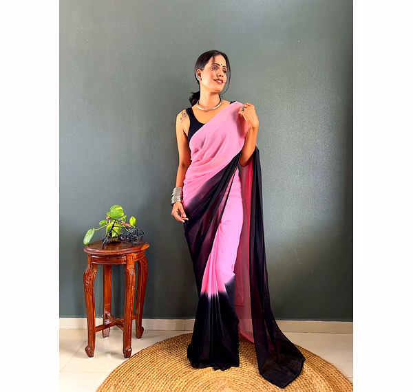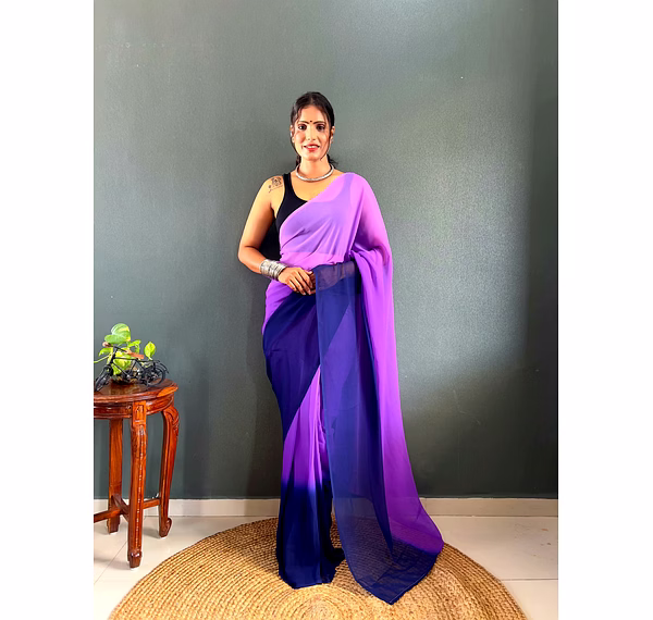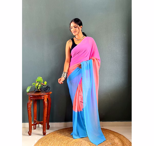 Elevate your style effortlessly with our Dual Tone Georgette Ready to Wear Saree. Embrace convenience and elegance in one stunning piece.
