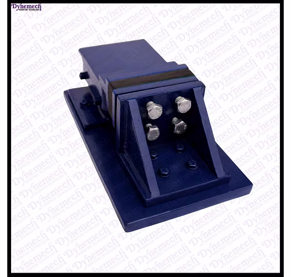 Dynemech Shock Mount Series DXO1-SP1 series is designed for Very heavy machines which produce high shocks and are top heavy or have high rapid movements. These mounts provides stability to forging presses which have a very small area and are heavier on the top half. The base is equipped with multi layers of DHS1 insulation plates and the strong side support avoids lateral movement of the machine. Similarly for VMC machines these mounts provides high efficiency along with preventing machine shaking during high rapid.