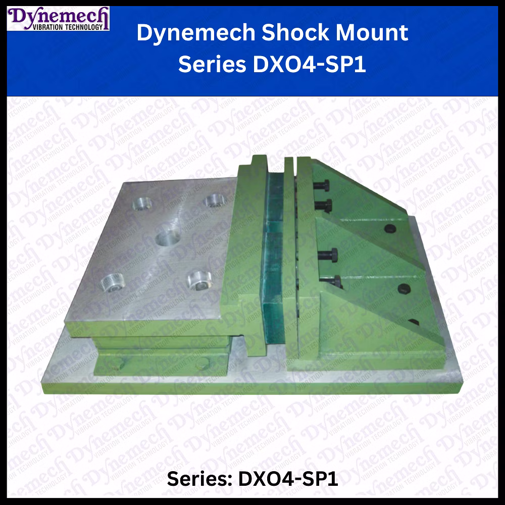 Dynemech Shock Mount Series DXO4-SP1 series is designed for Very heavy machines which produce high shocks and are top heavy or have high rapid movements. These mounts provides stability to forging presses which have a very small area and are heavier on the top half. The base is equipped with multi layers of DHS1 insulation plates and the strong side support avoids lateral movement of the machine. Similarly for VMC machines these mounts provides high efficiency along with preventing machine shaking during high rapid.