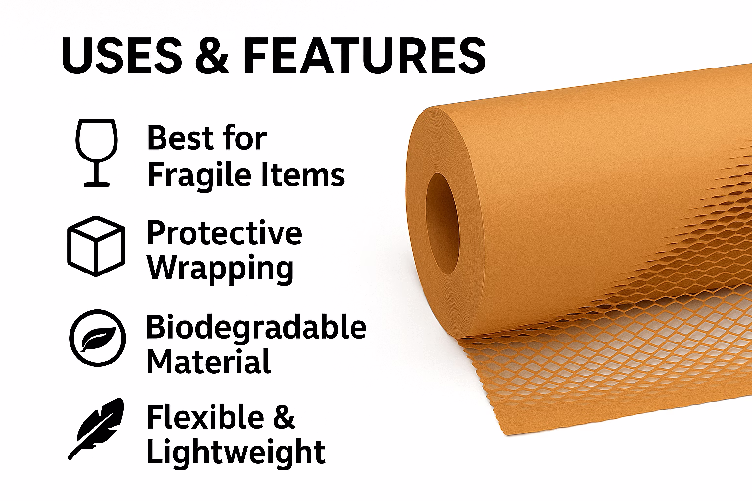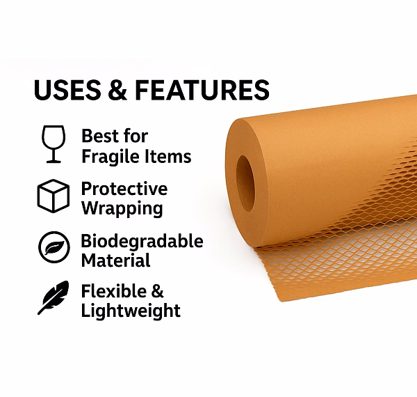 It is widely used by e-commerce brands, exporters, and manufacturers for safe transit of fragile products like glassware, bottles, ceramics, cosmetics, and electronics.
