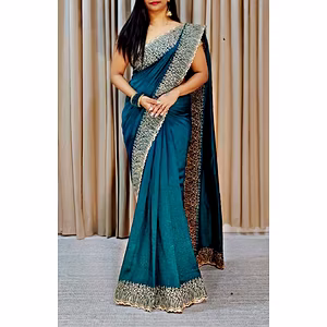 Introducing the stunning Blooming Vichitra Saree! This beautiful saree is the perfect addition to your wardrobe, whether you're attending a formal event or a casual gathering. The saree is made from high-quality fabric that is both comfortable and durable, making it the perfect choice for long events. The saree features intricate hand print work with zari and sequins embroidery, which adds a touch of elegance and sophistication to the design. The lace border adds to the overall beauty of the saree and complements the design perfectly. In addition to the saree, this set also includes a beautiful blouse made from Banglory fabric. The blouse features fully embroidered work on the front and back side, which gives it a unique and eye-catching look. It is fully stitched and can fit up to 42 inches. With its stunning design and high-quality materials, the Blooming Vichitra Saree is sure to make you stand out from the crowd. It is perfect for any occasion and is sure to receive compliments from everyone around you. Don't miss out on this beautiful and unique saree set!