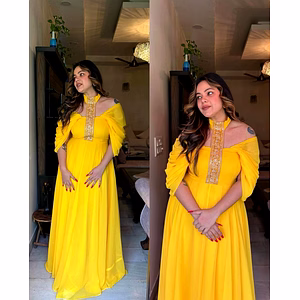 Introducing our latest addition to our collection - the elegant and stylish gown. Crafted with 14 kg Reyon fabric, this gown is perfect for those looking for comfort and style. The designer lace on the gown adds a touch of sophistication and glamour to the outfit. We understand that sizing can be a concern for many customers, which is why we offer L size (40 inch stitched) that can be adjusted from 38" to 44" for your body comfort. Our standard stitching with designer sleeve pattern ensures that the gown fits perfectly and complements your body shape. The gown is 56 inches long with a flair of 4 meters, making it flow beautifully and gracefully as you move. The designer V-neck with fancy sleeve adds a modern and chic touch to the outfit, making it perfect for both formal and informal occasions. We understand that comfort is key, which is why we have lined this gown with cotton fabric (full up to the bottom) that guarantees maximum comfort and breathability. This gown is available in two colours, black and maroon, ensuring that you have options to choose from based on your preferences and occasion. When you make a purchase, you will receive the gown in a package that weighs 1.2 kg. In summary, our gown is the perfect combination of elegance, comfort, and style. Get yours today and step out in confidence knowing that you're wearing an outfit that stands out from the crowd.