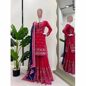 Introducing our stunning Lehengha set, designed to make you stand out and feel like a true diva. Crafted with exquisite details and superior quality, this Lehengha is a must-have for any special occasion. Made from Foux Gorgette fabric, our Lehengha is lightweight, comfortable, and drapes beautifully on any body type. The intricate sequence and thread work add a touch of glamour, making you the center of attention wherever you go. With a semi-stitched Lehengha type, you have the flexibility to customize it to your preference, ensuring a perfect fit up to size 44. The three-meter flair, along with cancan and canvas, adds volume and enhances your graceful movements, creating a mesmerizing silhouette. The Choli, made from Foux Gorgette fabric, is designed to complement the Lehengha perfectly. It features the same sequence and thread work, adding a cohesive and luxurious touch to the entire ensemble. The unstitched design allows you to tailor it to your measurements, ensuring a flattering fit every time. Completing the look is the Dupatta, made from Foux Gorgette fabric. The exquisite sequence work with thread and lace borders adds an elegant and sophisticated touch. It drapes effortlessly, adding a touch of grace and femininity to your overall appearance. Weighing only 1.5 kg, our Lehengha set is lightweight and easy to carry, ensuring maximum comfort throughout the day or night. With its impeccable craftsmanship, luxurious materials, and attention to detail, our Lehengha set is the epitome of elegance and style. Make a statement and leave a lasting impression with this exquisite ensemble. Experience the allure and charm of our Lehengha set and be the belle of the ball.