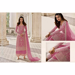The Elegant Fox Georgette Set with Sequence Embroidery and Real Mirror Dupatta is a masterpiece of contemporary ethnic fashion, designed to offer a perfect blend of traditional aesthetics and modern sophistication. This luxurious set is crafted from high-quality georgette fabric, known for its lightweight, smooth texture and fluid drape, making it an ideal choice for various occasions, from festive celebrations to formal gatherings. The outfit features intricate sequence embroidery, meticulously hand-stitched by skilled artisans. This elaborate embroidery work exudes an unparalleled charm, with shimmering sequences that reflect light beautifully, adding a touch of sparkle and elegance to the ensemble. The delicate patterns and motifs created through the sequence embroidery are inspired by traditional designs, yet they carry a contemporary flair, making the outfit versatile for both classic and modern wardrobes. Adding to the allure of this exquisite set is the real mirror dupatta, which is a true work of art. The dupatta is adorned with genuine mirrors, precisely embedded and bordered with complementary embroidery to enhance its overall appeal. The mirrors catch the light at every angle, creating a dazzling effect that captures attention and adds a festive, radiant glow to the entire outfit. The real mirror work is both a testament to the authenticity of the craftsmanship and a reflection of the rich cultural heritage it represents. The color palette of the Elegant Fox Georgette Set is carefully chosen to enhance its elegance and sophistication. Soft, muted tones combined with vibrant accents create a harmonious balance, ensuring that the outfit stands out without being overly ostentatious. The set typically includes a gracefully designed kurta, complemented by matching bottoms and the aforementioned stunning dupatta. Comfort is not compromised in the pursuit of beauty; the georgette fabric ensures breathability and ease of movement, allowing the wearer to feel at ease while looking their best. The ensemble is tailored to perfection, offering a flattering fit that enhances the wearer’s silhouette. The Elegant Fox Georgette Set with Sequence Embroidery and Real Mirror Dupatta is more than just an outfit; it is a statement piece that embodies elegance, craftsmanship, and timeless beauty. It is perfect for anyone looking to make a memorable impression while embracing the rich traditions of ethnic fashion with a modern twist.