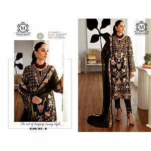 The Elegant Fox Georgette Set with Sequence Embroidery and Real Mirror Dupatta is a masterpiece of contemporary ethnic fashion, designed to offer a perfect blend of traditional aesthetics and modern sophistication. This luxurious set is crafted from high-quality georgette fabric, known for its lightweight, smooth texture and fluid drape, making it an ideal choice for various occasions, from festive celebrations to formal gatherings. The outfit features intricate sequence embroidery, meticulously hand-stitched by skilled artisans. This elaborate embroidery work exudes an unparalleled charm, with shimmering sequences that reflect light beautifully, adding a touch of sparkle and elegance to the ensemble. The delicate patterns and motifs created through the sequence embroidery are inspired by traditional designs, yet they carry a contemporary flair, making the outfit versatile for both classic and modern wardrobes. Adding to the allure of this exquisite set is the real mirror dupatta, which is a true work of art. The dupatta is adorned with genuine mirrors, precisely embedded and bordered with complementary embroidery to enhance its overall appeal. The mirrors catch the light at every angle, creating a dazzling effect that captures attention and adds a festive, radiant glow to the entire outfit. The real mirror work is both a testament to the authenticity of the craftsmanship and a reflection of the rich cultural heritage it represents. The color palette of the Elegant Fox Georgette Set is carefully chosen to enhance its elegance and sophistication. Soft, muted tones combined with vibrant accents create a harmonious balance, ensuring that the outfit stands out without being overly ostentatious. The set typically includes a gracefully designed kurta, complemented by matching bottoms and the aforementioned stunning dupatta. Comfort is not compromised in the pursuit of beauty; the georgette fabric ensures breathability and ease of movement, allowing the wearer to feel at ease while looking their best. The ensemble is tailored to perfection, offering a flattering fit that enhances the wearer’s silhouette. The Elegant Fox Georgette Set with Sequence Embroidery and Real Mirror Dupatta is more than just an outfit; it is a statement piece that embodies elegance, craftsmanship, and timeless beauty. It is perfect for anyone looking to make a memorable impression while embracing the rich traditions of ethnic fashion with a modern twist.