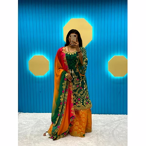The Elegant Georgette Suit with Sequin Embroidery & Mirror Work is a statement-making ensemble that is perfect for any event. Made from high-quality georgette fabric, this suit offers a luxurious feel and a sophisticated drape. With its intricate sequin embroidery and mirror work, it adds a touch of glamour and sparkle, making it an ideal choice for festive occasions, parties, and weddings. Available in multiple sizes, this suit ensures a perfect fit for different body types, combining traditional craftsmanship with contemporary elegance. If you appreciate fine detailing and timeless style, this elegant suit is a must-have addition to your wardrobe.