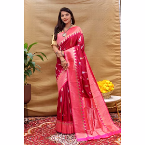 The Elegant Pure Silk Handloom Saree with Jari Border and Pallu is a timeless masterpiece that embodies the rich heritage and unparalleled craftsmanship of Indian weavers. This exquisite saree is meticulously woven on traditional handlooms, ensuring that each piece is unique and a true work of art. The luxurious fabric, made from the finest quality silk, drapes gracefully, offering a sophisticated and regal appearance that is perfect for any special occasion. The saree features a beautifully designed Jari border and pallu, which adds a touch of opulence and grandeur. The Jari, crafted from fine metallic threads, intricately interwoven into the silk, creates stunning patterns that shimmer and catch the light with every movement. These intricate designs often draw inspiration from traditional motifs and nature, including flowers, vines, and paisley patterns, symbolizing prosperity and beauty. The pure silk fabric is incredibly soft to the touch and has a natural sheen that enhances its elegance. The rich texture and vibrant colors of the silk make the saree a versatile choice that can be styled in various ways to suit different occasions, from weddings and festive celebrations to formal gatherings and cultural events. The saree is available in a wide range of colors, from deep, rich jewel tones to soft, pastel hues, ensuring that there is a perfect shade for every taste and preference. Wearing this Elegant Pure Silk Handloom Saree with Jari Border and Pallu is not just about adorning oneself with a beautiful garment; it is an experience that connects you to the centuries-old tradition of handloom weaving. It reflects a celebration of the art, culture, and history that have been passed down through generations of skilled artisans. By choosing this saree, you are not only making a style statement but also supporting the livelihood of these artisans and preserving an important part of India's cultural heritage.