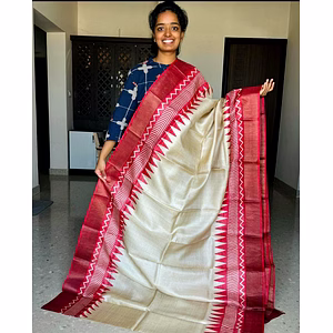 Introducing our Elephant Batik Tussar Saree with Silver Borders - Handloom. This exquisite saree is a true masterpiece, meticulously handcrafted with love and care. The intricate elephant batik print adds a touch of elegance and uniqueness to this traditional attire. Made from premium tussar silk, it offers a luxurious and comfortable feel, draping beautifully on any body type. The silver borders enhance the overall appeal, adding a touch of glamour and sophistication. Perfect for special occasions, weddings, or festive celebrations, this saree effortlessly combines tradition with contemporary style. Stand out from the crowd and make a fashion statement with this one-of-a-kind saree. Elevate your wardrobe with our Elephant Batik Tussar Saree with Silver Borders - Handloom, and embrace the sheer beauty and grace it brings to your ensemble.