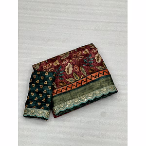 Introducing the stunning BSY Dola Silk Saree, a true masterpiece of Indian craftsmanship and style. This saree is a perfect blend of tradition and modernity, with its exquisite Kasab Zari Jacquard Border Pattern and pure Mangalgiri Elephant Print. The self Kalamkari print all over the body of the saree adds a unique touch of elegance and sophistication. Crafted from the finest quality silk, this saree is not only beautiful but also incredibly comfortable to wear. The six yards of fabric drapes effortlessly around your body, creating a flattering silhouette that is both feminine and graceful. The BSY Dola Silk Saree comes with an unstitched blouse that features the same self Kalamkari print as the body of the saree. This blouse can be tailored to your exact measurements, ensuring a perfect fit. The self Kalamkari print on the blouse adds a cohesive and coordinated look to the overall outfit. Whether you are attending a wedding, a formal event, or simply want to make a statement at a special occasion, this saree is the perfect choice. Its unique blend of colors, patterns, and textures make it a true standout piece that is sure to turn heads. In summary, the BSY Dola Silk Saree is a must-have addition to your wardrobe. It is a beautiful, comfortable, and versatile piece that will make you look and feel your best. With its timeless design and impeccable craftsmanship, this saree is sure to become a treasured item in your collection.