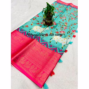 Introducing the stunning BSY Dola Silk Saree, a true masterpiece of Indian craftsmanship and style. This saree is a perfect blend of tradition and modernity, with its exquisite Kasab Zari Jacquard Border Pattern and pure Mangalgiri Elephant Print. The self Kalamkari print all over the body of the saree adds a unique touch of elegance and sophistication. Crafted from the finest quality silk, this saree is not only beautiful but also incredibly comfortable to wear. The six yards of fabric drapes effortlessly around your body, creating a flattering silhouette that is both feminine and graceful. The BSY Dola Silk Saree comes with an unstitched blouse that features the same self Kalamkari print as the body of the saree. This blouse can be tailored to your exact measurements, ensuring a perfect fit. The self Kalamkari print on the blouse adds a cohesive and coordinated look to the overall outfit. Whether you are attending a wedding, a formal event, or simply want to make a statement at a special occasion, this saree is the perfect choice. Its unique blend of colors, patterns, and textures make it a true standout piece that is sure to turn heads. In summary, the BSY Dola Silk Saree is a must-have addition to your wardrobe. It is a beautiful, comfortable, and versatile piece that will make you look and feel your best. With its timeless design and impeccable craftsmanship, this saree is sure to become a treasured item in your collection.