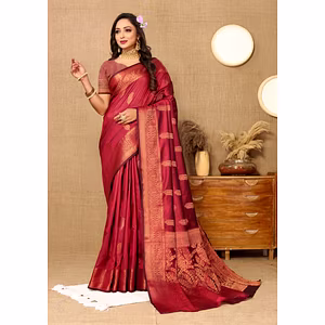 Introducing the Pure Soft Kanchipuram Silk Saree, a stunning piece of Indian ethnic wear that is sure to make you stand out on any occasion. This saree is crafted using the finest quality silk and features rich woven pallu with embossed zari and meenakari weaving all over the saree. The full saree has scalloped work border on both sides that adds to its elegance and beauty. The Pure Soft Kanchipuram Silk Saree is perfect for women who appreciate the finer things in life. It is a timeless piece that can be worn on special occasions such as weddings, parties, and festivals. The saree is available in a range of colors to suit every taste and preference. One of the unique selling points of this saree is its durability and longevity. The high-quality silk used in its making ensures that it will last for years to come. The saree is also easy to maintain and can be dry cleaned or hand washed with care. The saree also comes with a barcode blouse that complements the saree perfectly. The blouse is made of high-quality fabric and features intricate embroidery work that adds to its beauty. In summary, the Pure Soft Kanchipuram Silk Saree is a stunning piece of Indian ethnic wear that is sure to turn heads wherever you go. Its rich weaving, elegant design, and unique features make it a must-have for any woman who wants to make a statement with her fashion choices. Get your hands on this exquisite saree today and experience the beauty and elegance of Kanchipuram silk.