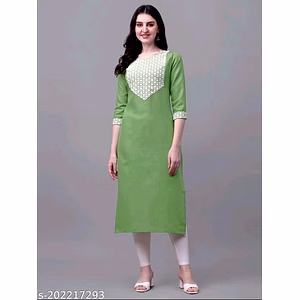 Embroidered Cotton Flex Kurti in Pista Green