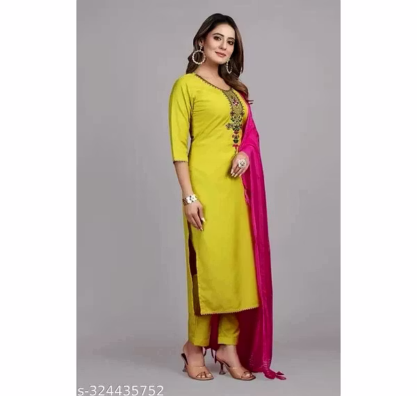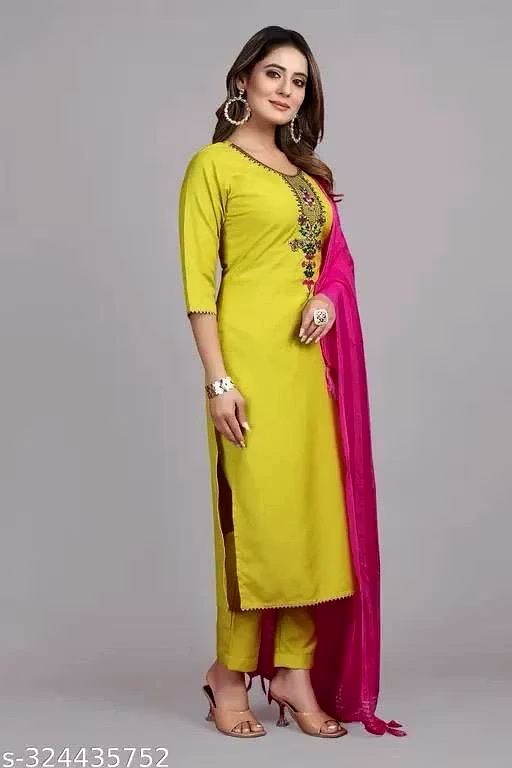 Introducing our brand new Embroidered Work Kurti! Crafted from premium-quality Siub Cotton, this stylish and comfortable kurti is the perfect addition to your wardrobe. The Nazneem Dupatta with Lass Broder and Siub Cotton Plazo with Full Stitched are perfectly paired with the kurti, making it a complete and fashionable outfit. Available in sizes S, M, L, and XL, this kurti is designed to fit all body types. The 2-meter Nazneem Dupatta adds a touch of elegance and can be styled in a variety of ways. The Siub Cotton Plazo with Full Stitched is perfect for those who prefer comfort without compromising on style. The intricate embroidery work on the kurti adds a touch of sophistication to your outfit, making it perfect for both casual and formal occasions. The 3/4 sleeves and 46-inch length of the kurti provide a comfortable and relaxed fit, while the 38-inch length of the pant adds an element of style. Crafted from 420-gram Siub Cotton, this Embroidered Work Kurti is both durable and easy to maintain. It is perfect for everyday wear, and its unique design is sure to turn heads. Make a statement with our Embroidered Work Kurti and add a touch of elegance to your wardrobe. Order now and experience the perfect blend of comfort and style!