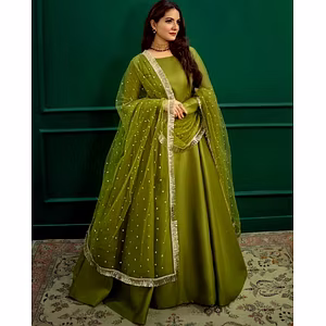 Introducing our Embroidered Net Gown with Full Flair and Fancy Back - a stunning piece designed to make you feel like a true fashion icon. Crafted with exquisite attention to detail, this gown showcases a beautiful net fabric that flows gracefully, creating a mesmerizing silhouette. The full flair adds an element of grandeur and elegance, making it the perfect choice for any special occasion. The intricate embroidery work on the gown is a testament to the skilled craftsmanship that goes into every piece. Delicate threadwork and intricate patterns create a sense of timeless beauty, ensuring you stand out from the crowd. But it's not just about the aesthetics - this gown is also designed with your comfort in mind. The lightweight net fabric allows for easy movement, while the flattering fit enhances your natural curves. You can dance the night away without feeling restricted or uncomfortable. The fancy back design is a true showstopper. Featuring unique and eye-catching details, it adds an element of surprise to your look. Whether you're walking down the aisle or attending a glamorous event, all eyes will be on you as you make your grand entrance. Investing in our Embroidered Net Gown with Full Flair and Fancy Back means investing in a piece that will make you feel confident, beautiful, and unforgettable. With its combination of style, comfort, and craftsmanship, this gown is a true standout in any wardrobe. So, why settle for ordinary when you can have extraordinary? Step into the spotlight and let our Embroidered Net Gown with Full Flair and Fancy Back be the centerpiece of your next special occasion. Experience the beauty, elegance, and allure that this gown brings.