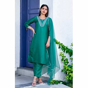 Introducing our latest addition to the ethnic wear collection - the Embroidered Work Kurti! Crafted with premium quality net fabric, this kurti is bound to turn heads with its intricate embroidery and exquisite design. The semi-stitched dupatta adds a touch of elegance to the outfit, making it a perfect choice for any occasion. The net dupatta with lace border and net plazo with full-stitched dupatta offer a comfortable fit, allowing you to move freely without compromising on style. The kurti length of 46 inches and full sleeves of 42 inches provide ample coverage, making it suitable for any body type. The unique selling point of this kurti lies in its versatility - it can be dressed up or down, depending on the occasion. The embroidered work adds a touch of sophistication, making it ideal for a formal event, while the comfortable fit makes it perfect for a casual outing. Weighing at just 550 grams, this kurti is easy to carry and maintain, making it an ideal choice for the modern-day woman who is always on the go. So why wait? Grab the Embroidered Work Kurti today and add a touch of elegance to your wardrobe!