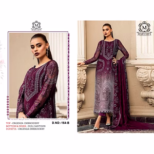 Introducing our stunning Embroidered Organza Mirror Work Dress Set, designed to make you look and feel like royalty. This exquisite dress set is crafted from premium quality organza fabric, which is both lightweight and breathable, ensuring maximum comfort throughout the day. The mirror-work embroidery adds a touch of elegance and sophistication, making this dress set perfect for any special occasion. With a 54" max size, this dress set is designed to flatter all body types, making it a versatile addition to any wardrobe. The intricate detailing on the dress and dupatta will make heads turn wherever you go, while the comfortable fit will keep you feeling confident and beautiful. The dress set also comes with a matching churidar that is both stylish and comfortable. The churidar is crafted from soft and stretchable cotton, ensuring a perfect fit and maximum range of motion. Whether you're attending a wedding, a party, or any other special event, this Embroidered Organza Mirror Work Dress Set is sure to make you the center of attention. With its superior quality, stunning design, and comfortable fit, this dress set is the perfect choice for any fashion-conscious woman looking to make a statement. So why wait? Add this gorgeous dress set to your wardrobe today and step out in style!
