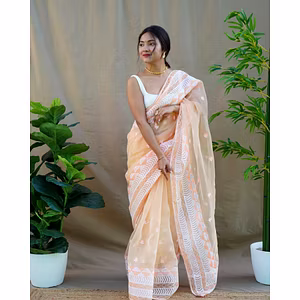 Experience the elegance and sophistication of our Embroidered Organza Saree with Satin Bangalori Blouse. Crafted with premium quality organza fabric, this saree boasts exquisite embroidery that adds a touch of glamour and style to any occasion. The intricate detailing on the saree is a testament to the artistry and craftsmanship of our skilled artisans. The saree features a satin Bangalori blouse that complements the saree perfectly. The blouse is designed to fit comfortably, so you can move and dance freely without any discomfort. Our sarees are perfect for weddings, parties, and other special occasions where you want to look your best. One of the unique selling points of our saree is the versatility it offers. You can wear it in a traditional manner or experiment with different draping styles to create a unique look. The saree is available in a range of colors, so you can choose the one that best suits your style and personality. Another key benefit of our saree is the durability and longevity it offers. The high-quality fabric ensures that the saree retains its shape and color even after multiple washes, making it a valuable addition to your wardrobe. In conclusion, our Embroidered Organza Saree with Satin Bangalori Blouse is a perfect combination of style, elegance, and comfort. Whether you are attending a wedding or a party, this saree will make you stand out and look your best. Order yours now and experience the magic of our saree for yourself.