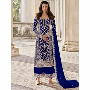 This stunning Kurti-Palazzo-Dupatta set is a must-have for any fashion-forward woman. Available in four gorgeous colours - blue, green, maroon, and yellow - this set is sure to elevate your wardrobe. Crafted from heavy rayon cotton with intricate embroidery work, the kurti is both comfortable and stylish. The set comes in a range of sizes, from S-36 to XXL-44, making it the perfect fit for any body shape. The Palazzo, made from pure rayon cotton fabric, features highlighted lining embroidery work that adds a touch of elegance to the overall design. The havy net fabric Dupatta is adorned with sequin butty work and finished off with attractive latkan, creating a sophisticated and glamorous look. Whether you're stepping out for a family function, a night out with friends, or simply want to add a touch of glamour to your everyday wardrobe, this Kurti-Palazzo-Dupatta set is the perfect choice. Flattering, comfortable, and eye-catching, this set is sure to turn heads and make you feel confident and stylish. Don't miss out on this unique and beautiful ensemble - order yours today!