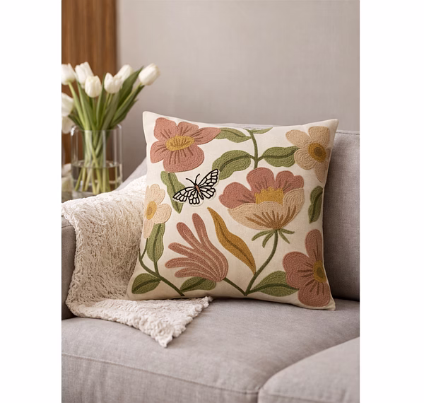 Elevate your home decor with our exquisite Embroidery Pillow Cover. Handmade with eco-friendly cotton and intricate hand embroidery, this cover adds a touch of elegance to your space.