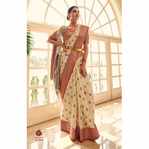 Introducing our exquisite Semi Pure Tussar Silk Weaving Saree, a true epitome of elegance and grace. Expertly crafted with precision and care, this saree is sure to captivate your heart and elevate your style. Made from the finest quality semi pure tussar silk, this saree boasts a luxurious texture that feels incredibly soft against your skin. The intricate weaving showcases the artistic brilliance of our skilled craftsmen, creating a mesmerizing pattern that will turn heads wherever you go. The highlight of this saree is the temple woven border, adding a touch of divine beauty to the overall design. The small woven butti all over the saree further accentuates its charm, making it a perfect choice for both formal occasions and festive celebrations. To add a contrasting element, the pallu features a stunning color combination that complements the saree perfectly. This contrast pallu adds a contemporary twist to the traditional design, making it a truly unique piece that stands out from the crowd. We understand the importance of a complete ensemble, which is why we have included a matching blouse piece with the saree. The exclusive tassels attached to the blouse piece add a touch of sophistication and lend a modern edge to the traditional attire. With our Semi Pure Tussar Silk Weaving Saree, you can effortlessly embrace your inner diva and make a lasting impression. Whether you're attending a wedding, a social gathering, or a festive event, this saree will make you the center of attention. Indulge in the timeless beauty of our Semi Pure Tussar Silk Weaving Saree and experience the luxury of wearing a masterpiece. Step into the spotlight and let this saree be your statement of style and elegance.