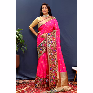 Our Modal Silk Saree features meticulously designed patterns that showcase the skill and creativity of traditional artisans. The intricate motifs and vibrant colors are achieved through a careful process of handcrafting, ensuring each saree is unique. Perfect for those who appreciate fine craftsmanship and cultural heritage, this saree stands out with its exquisite detailing. Pair it with statement jewelry to enhance your look and make a memorable impression.