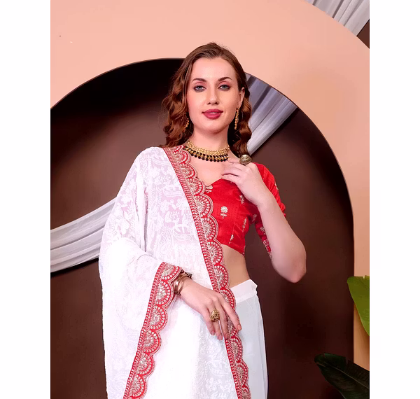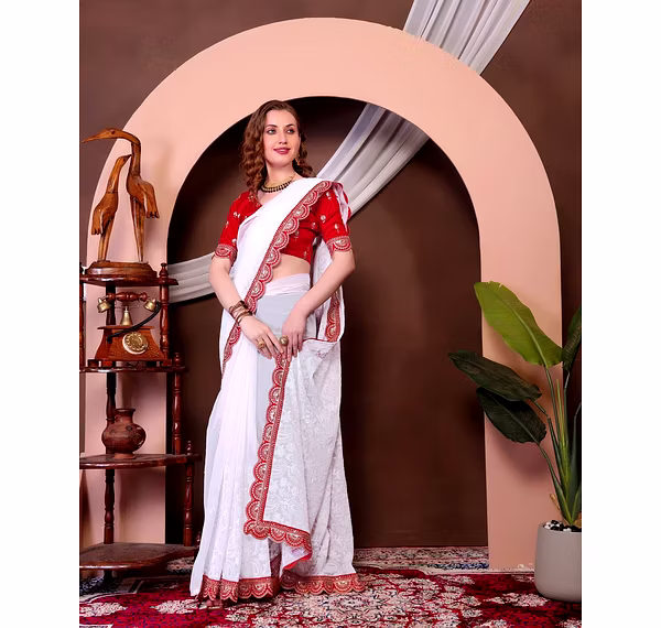 Experience the whisper-light elegance of the Exquisite Chikankari Georgette Saree, a blend of tradition and modern allure.