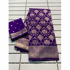 Introducing our Exquisite Khadi Silk Saree, a true masterpiece that combines traditional craftsmanship with contemporary elegance. This saree is a perfect blend of artistry and luxury, carefully handcrafted by skilled artisans to create a stunning visual delight. The highlight of this saree lies in its intricate Zari and Meenakari work, which adds a touch of opulence and glamour. The exquisite detailing showcases the rich heritage of Indian craftsmanship, making each saree a unique piece of art. Made from high-quality Khadi silk, this saree offers a luxurious drape and a soft, smooth texture that gracefully accentuates your beauty. The lightweight fabric ensures comfort throughout the day, making it ideal for any occasion, be it a formal event or a festive celebration. Featuring a wide range of vibrant colors and captivating designs, our Exquisite Khadi Silk Saree allows you to make a style statement like no other. The vivid hues and intricate patterns make it a head-turner, guaranteeing you a standout presence in any gathering. Moreover, this saree is not just about its stunning aesthetics. It is also a testament to our commitment to sustainability and ethical fashion. The use of Khadi silk promotes eco-friendly practices and supports local artisans, contributing to a more sustainable and inclusive fashion industry. Elevate your wardrobe with our Exquisite Khadi Silk Saree and experience the flawless blend of tradition and modernity. Make a lasting impression wherever you go with its timeless beauty and impeccable craftsmanship. Embrace elegance, embrace luxury, and embrace the essence of Indian heritage with this remarkable saree. Experience the allure of the Exquisite Khadi Silk Saree today and let your style speak volumes.