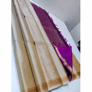 Experience the elegance and grace of Dharmavaram handloom weaving combined with the luxurious feel of pure Pattu silk. The vibrant Meenakari weaving adds a touch of opulence to this masterpiece.