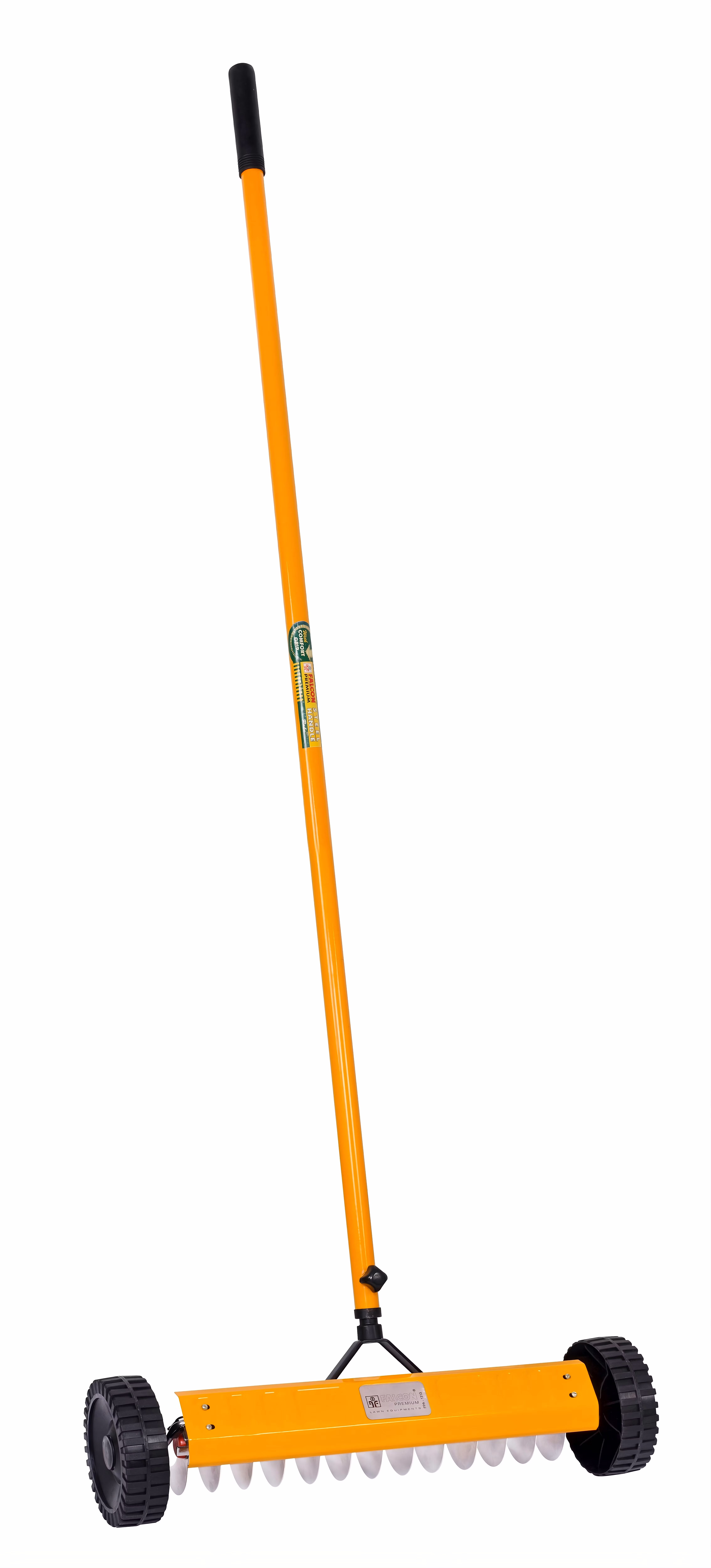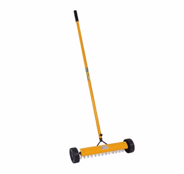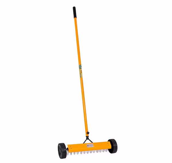 Used to improve lawn health by increasing nutrient and oxygen moment in soil. Stainless steel 13 spikes and long steel handle with comfort grip and wheels for easy moment.