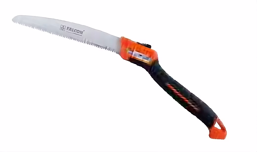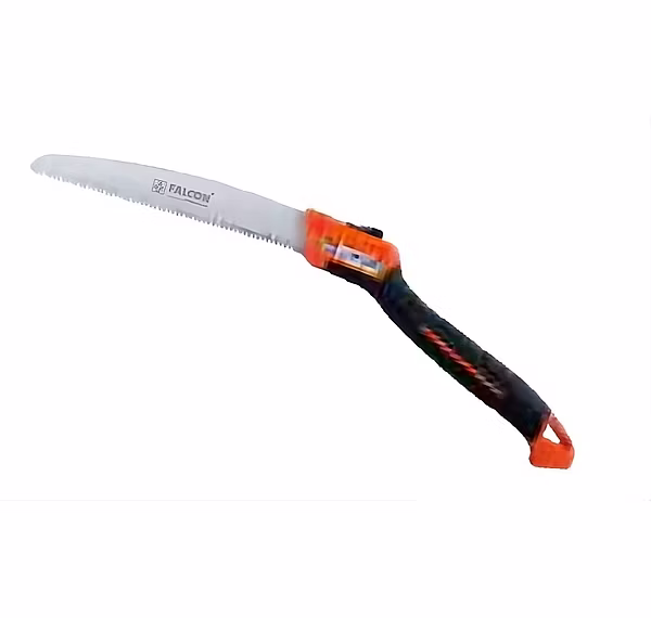 Falcon fold away pruning saw with double action teeth. Ideal for general purpose cutting & pruning branches. Designed for easy and efficient cutting of branches and thick stems. It features a sharp, high-quality carbon steel blade for smooth and clean cuts with minimal effort. The comfortable handle provides a strong grip for better control. Lightweight and durable, this pruning saw is perfect for orchards, farms, and gardens, making tree and plant trimming simple and effective.