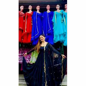 Introducing our Fancy Neck Georgette Gown with Full Flair and Chudidar Sleeves - the perfect blend of elegance and style. Crafted with premium quality georgette fabric, this gown is designed to accentuate your curves and make you feel like a queen. The gown features a fancy neck design that adds a touch of glamour to your overall look. The full flair of the gown adds a playful and feminine charm, making it ideal for any formal occasion. The chudidar sleeves are the perfect finishing touch, elegantly hugging your arms and adding an extra layer of sophistication. Not only is this gown visually stunning, it is also comfortable to wear. The lightweight georgette fabric allows for ease of movement, ensuring you can dance the night away without feeling restricted. Our Fancy Neck Georgette Gown is perfect for those special occasions such as weddings, parties, and formal events. Make a statement and stand out from the crowd with this unique and beautiful gown. Choose from a variety of colors to match your personal style. Available in XS to XXL sizes, this gown is perfect for women of all shapes and sizes. Invest in our Fancy Neck Georgette Gown today and experience the perfect blend of style and comfort. Upgrade your wardrobe and make heads turn wherever you go.