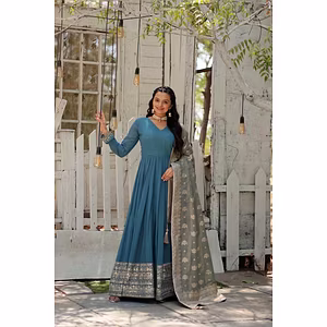 Introducing our Fancy Neck Georgette Gown with Full Flair and Chudidar Sleeves - the perfect blend of elegance and style. Crafted with premium quality georgette fabric, this gown is designed to accentuate your curves and make you feel like a queen. The gown features a fancy neck design that adds a touch of glamour to your overall look. The full flair of the gown adds a playful and feminine charm, making it ideal for any formal occasion. The chudidar sleeves are the perfect finishing touch, elegantly hugging your arms and adding an extra layer of sophistication. Not only is this gown visually stunning, it is also comfortable to wear. The lightweight georgette fabric allows for ease of movement, ensuring you can dance the night away without feeling restricted. Our Fancy Neck Georgette Gown is perfect for those special occasions such as weddings, parties, and formal events. Make a statement and stand out from the crowd with this unique and beautiful gown. Choose from a variety of colors to match your personal style. Available in XS to XXL sizes, this gown is perfect for women of all shapes and sizes. Invest in our Fancy Neck Georgette Gown today and experience the perfect blend of style and comfort. Upgrade your wardrobe and make heads turn wherever you go.